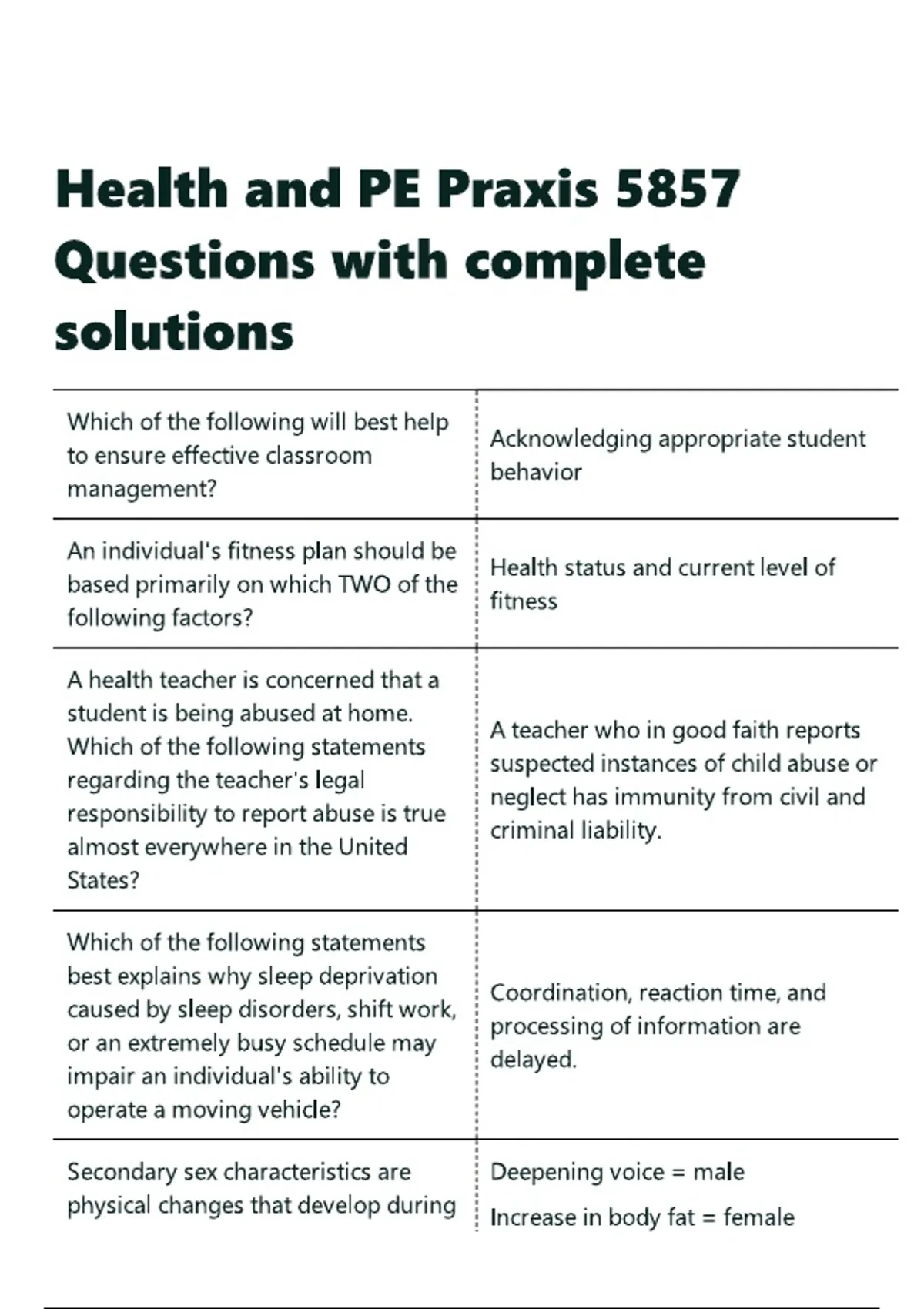 Health and PE Praxis 5857 Questions with complete solutions