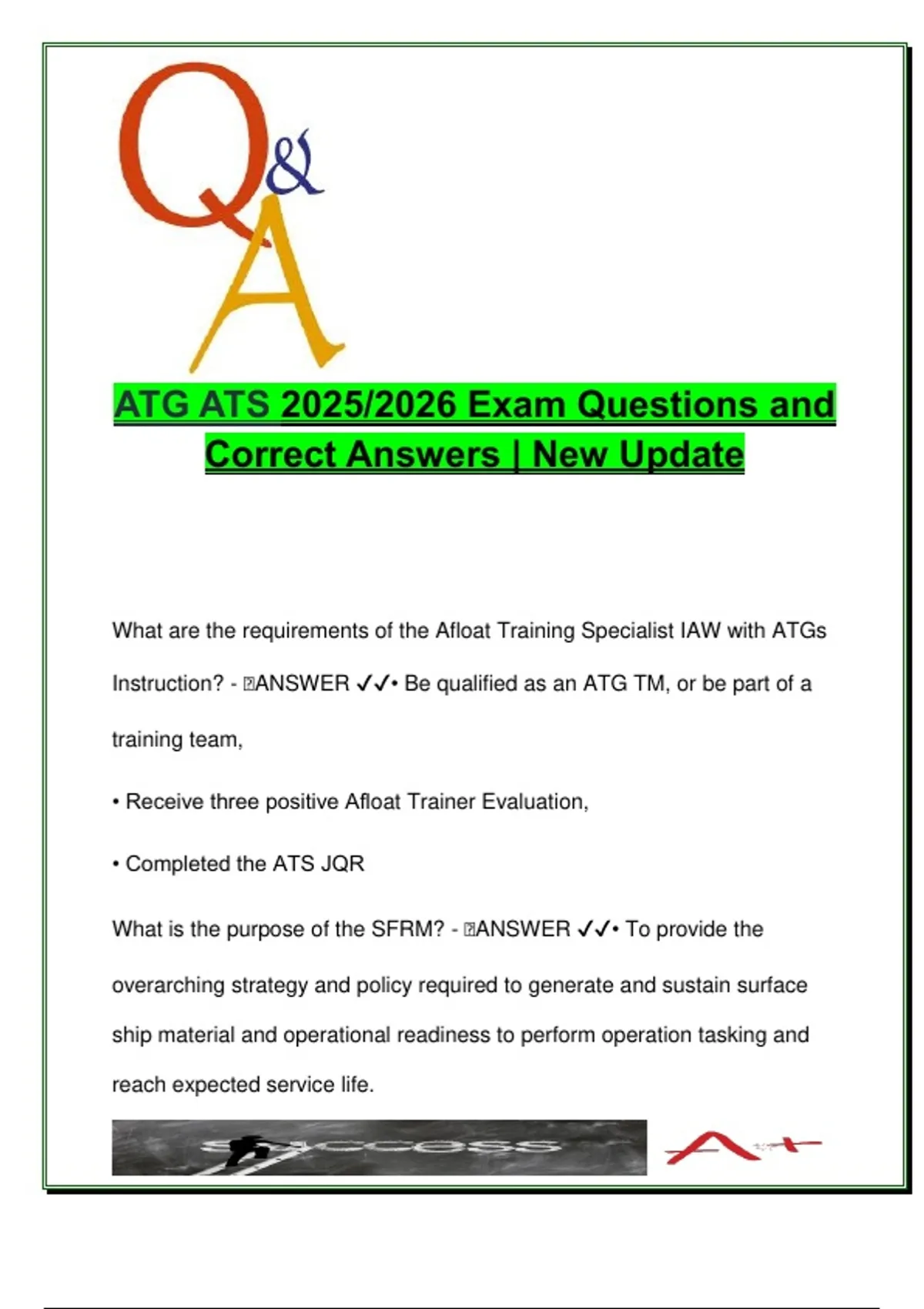 ATG ATS Exam 2025 | 150+ Questions | FRTP, READ-E, PESTONI, ORM, Training Teams | Naval Surface Forces