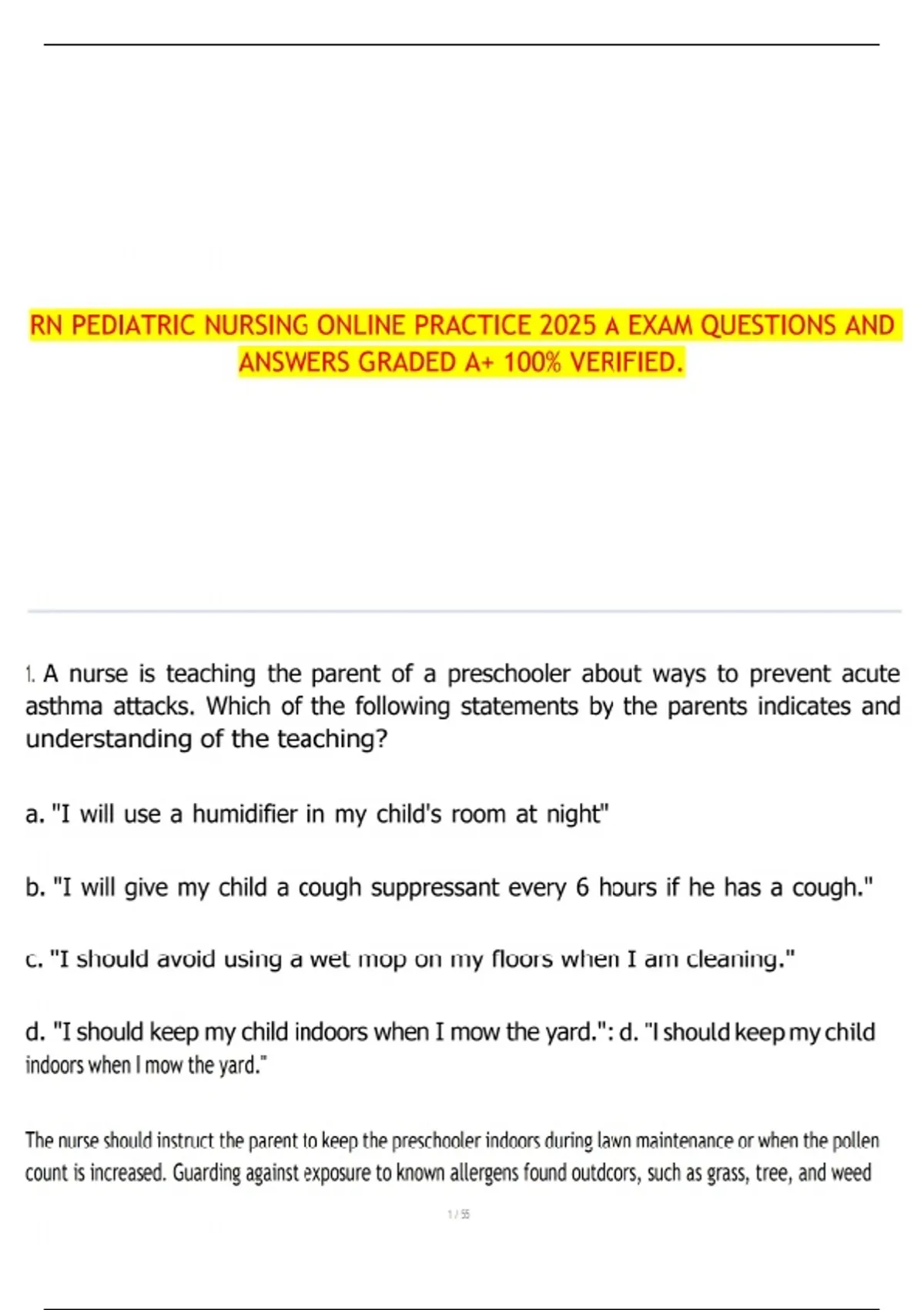 RN Pediatric Nursing Online Practice A – Exam Questions and Answers – Graded A+ (100% Guaranteed Success) NCLEX-Style Practice Questions – ATI RN Pediatric Nursing Edition 12.0 Chapter 1 – Questions and Answers – Graded A+ (100% Verified) RN PEDIATRIC NURSING ONLINE PRACTICE 2025 A EXAM QUESTIONS AND ANSWERS GRADED A+ 100% VERIFIED.