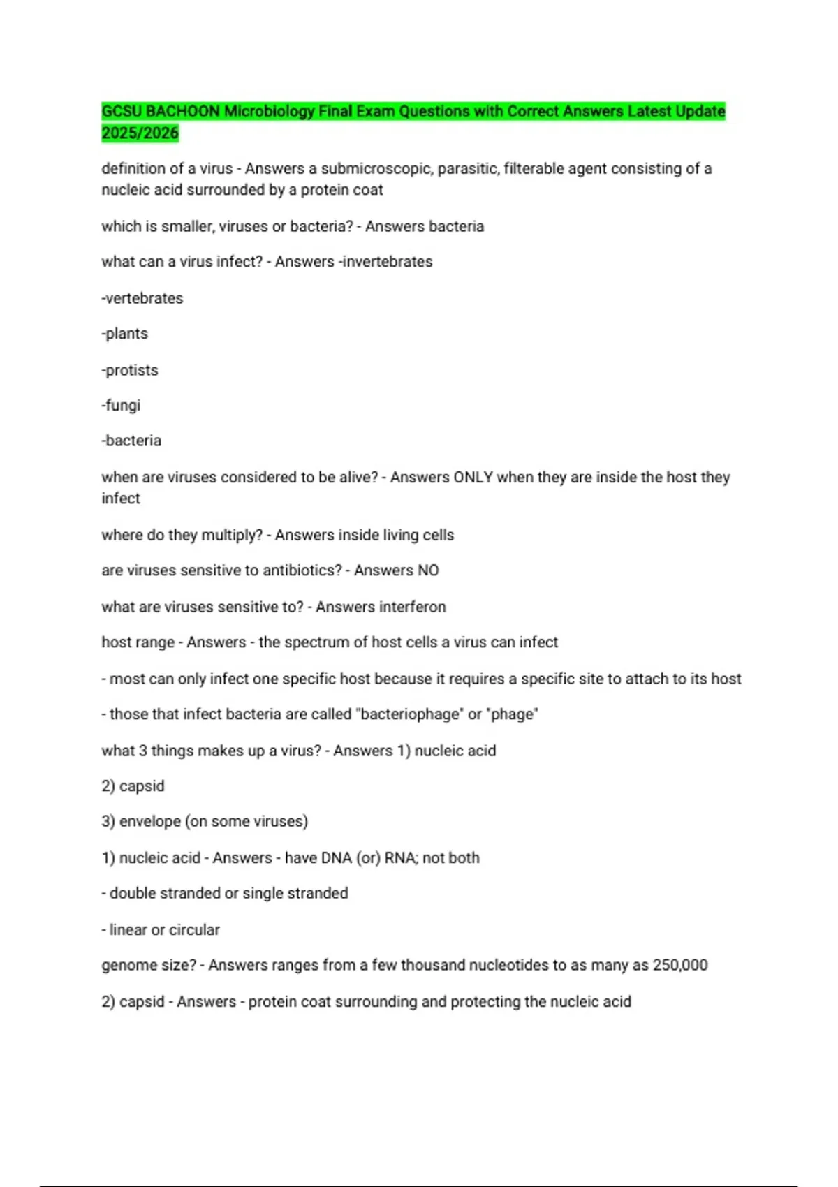 GCSU BACHOON MICROBIOLOGY BUNDLED QUESTIONS WITH CORRECT ANSWERS LATEST UPDATE 2025/2026