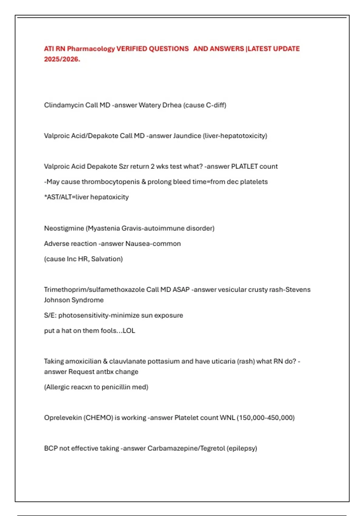 ATI RN Pharmacology| VERIFIED QUESTIONS AND ANSWERS. PACKAGE DEAL