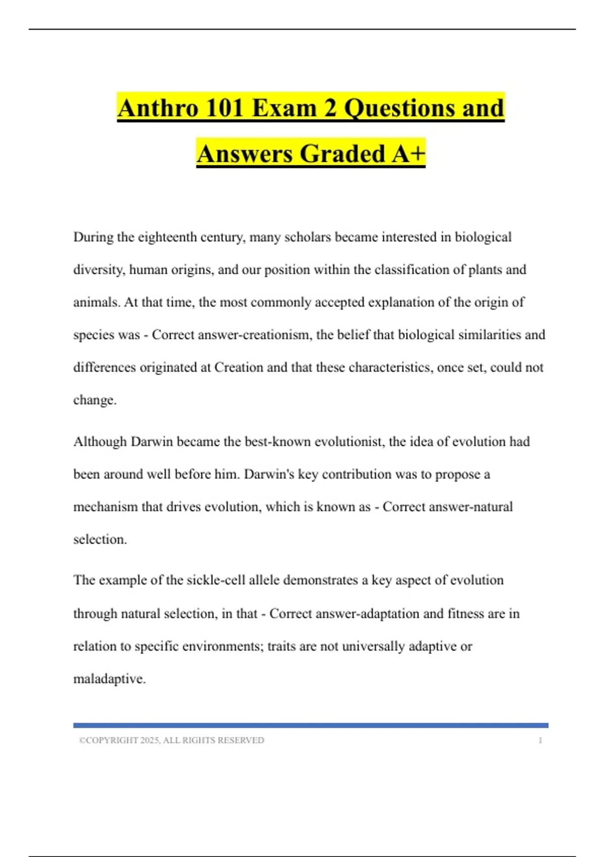 Anthro 101 Bundled Tests GRADED A+
