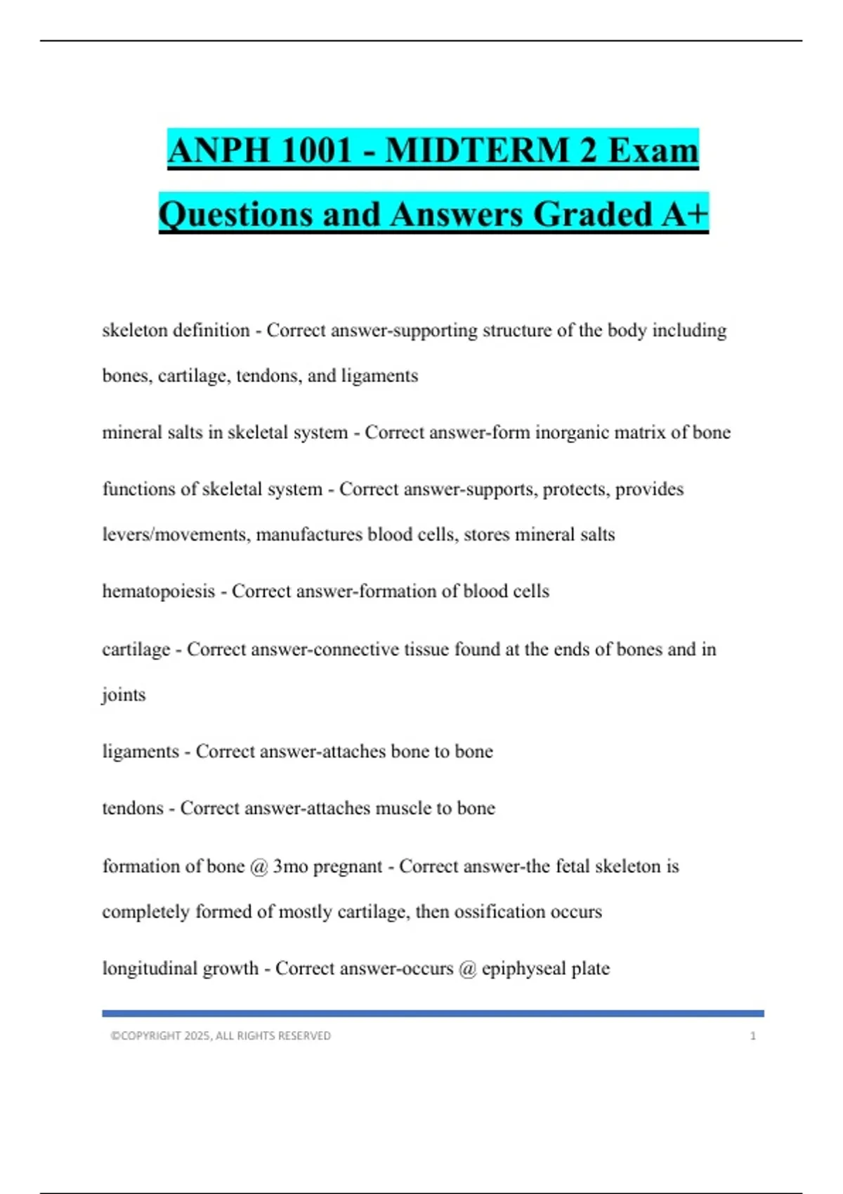 ANPH 1001 Bundled Tests Questions and Answers Graded A+