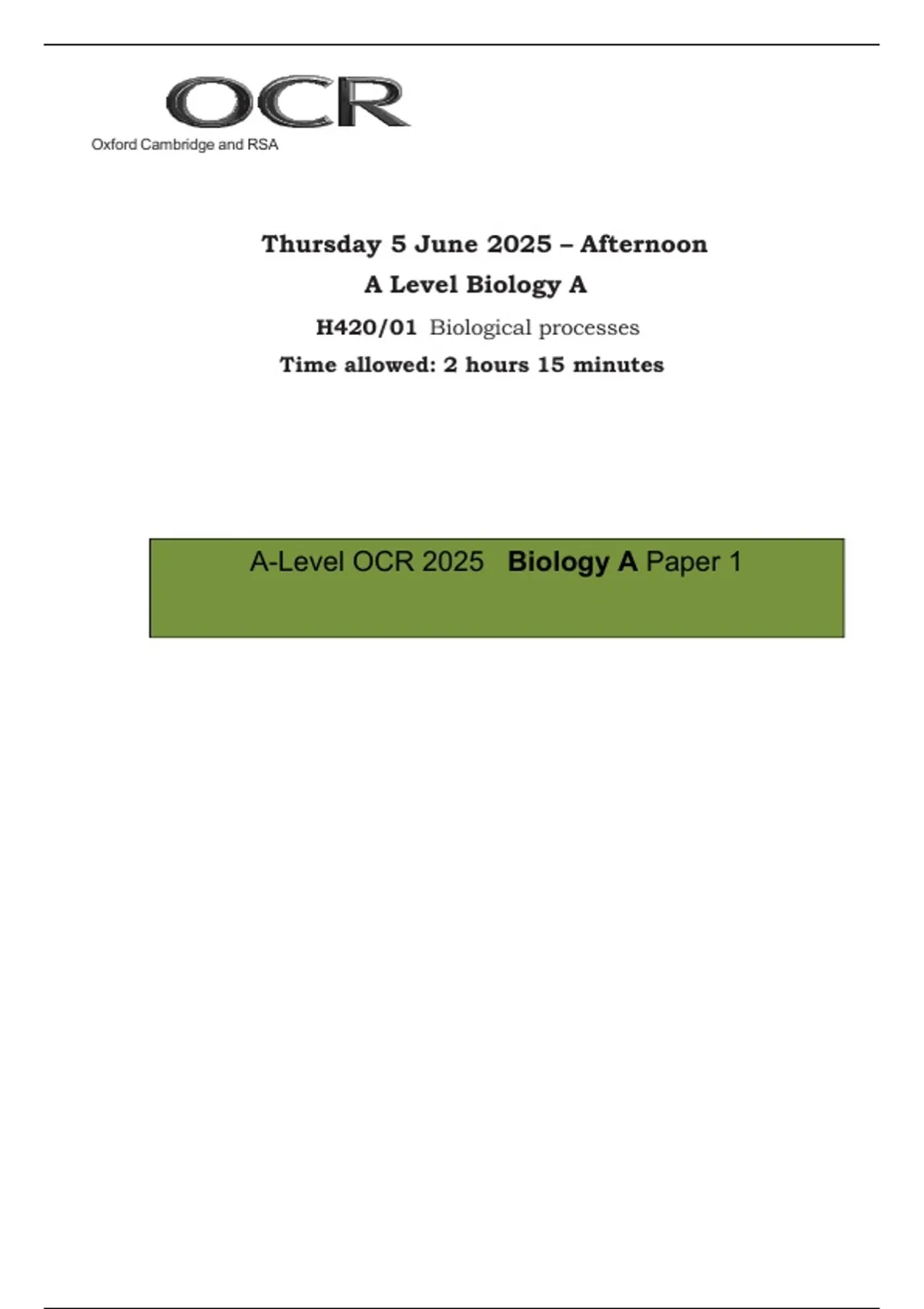 A-Level OCR 2025 Biology A Paper 1