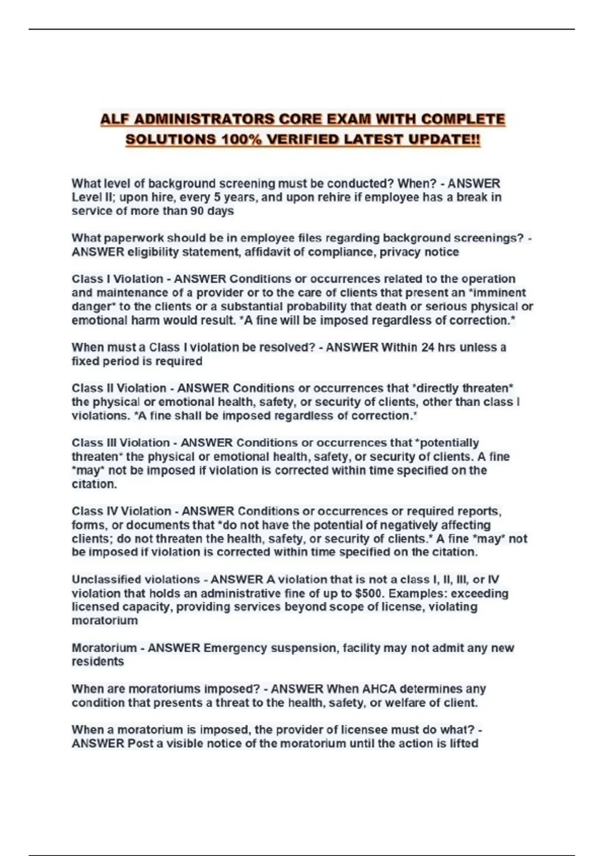 ALF ADMINISTRATORS CORE EXAM WITH COMPLETE SOLUTIONS 100% VERIFIED LATEST UPDATE!!