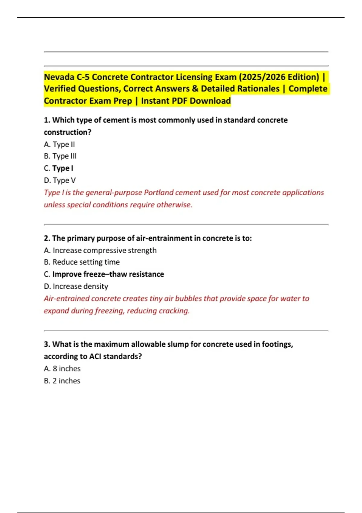 Complete Nevada contractor licensing package with verified questions and rationales. Covers C-5, B, NASCLA, and B-2 exams for residential, small commercial, and general building projects.