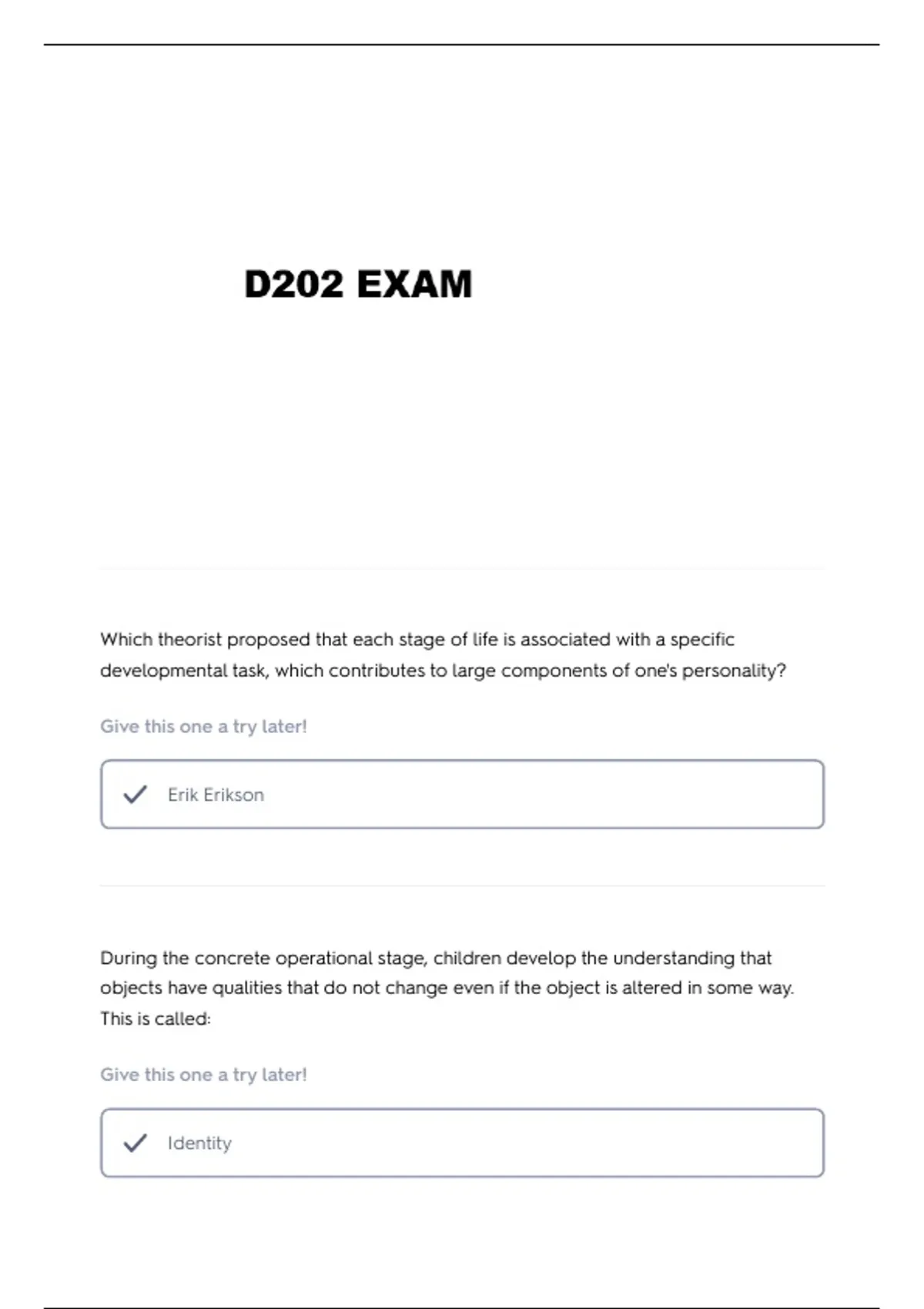 D202 HUMAN GROWTH & DEVELOPMENT 2 QUESTIONS AND VERIFIED ANSWERS
