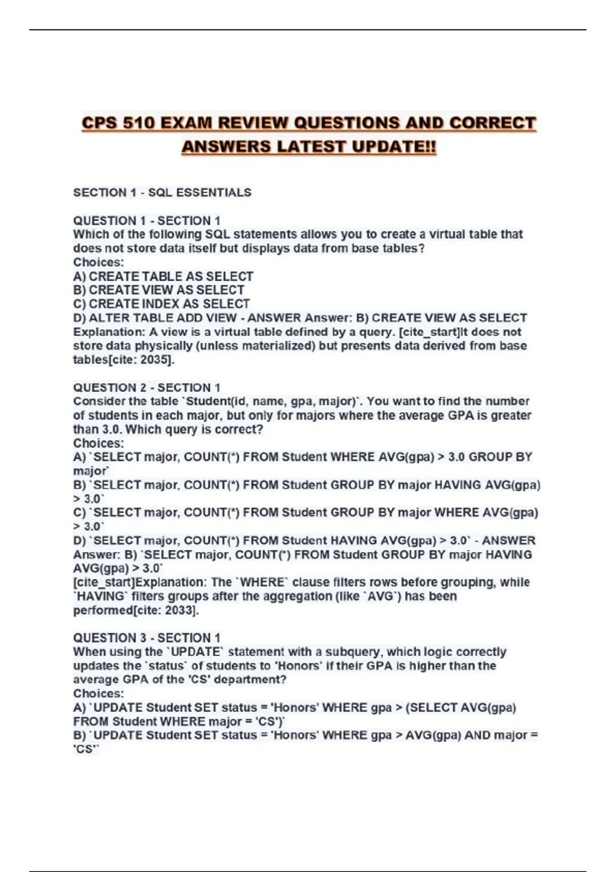 CPS 510 EXAM WITH COMPLETE SOLUTIONS 100% VERIFIED LATEST UPDATE!!