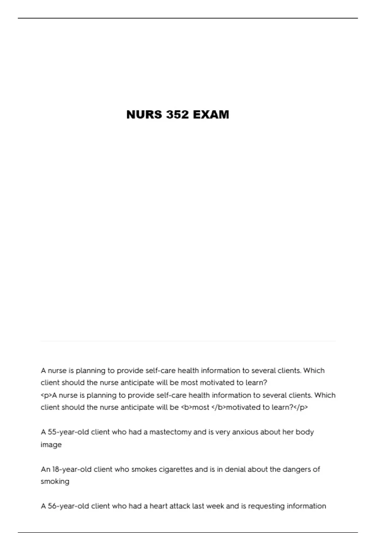 NURS 352 EXAMS WITH 100% CORRECT ANSWERS