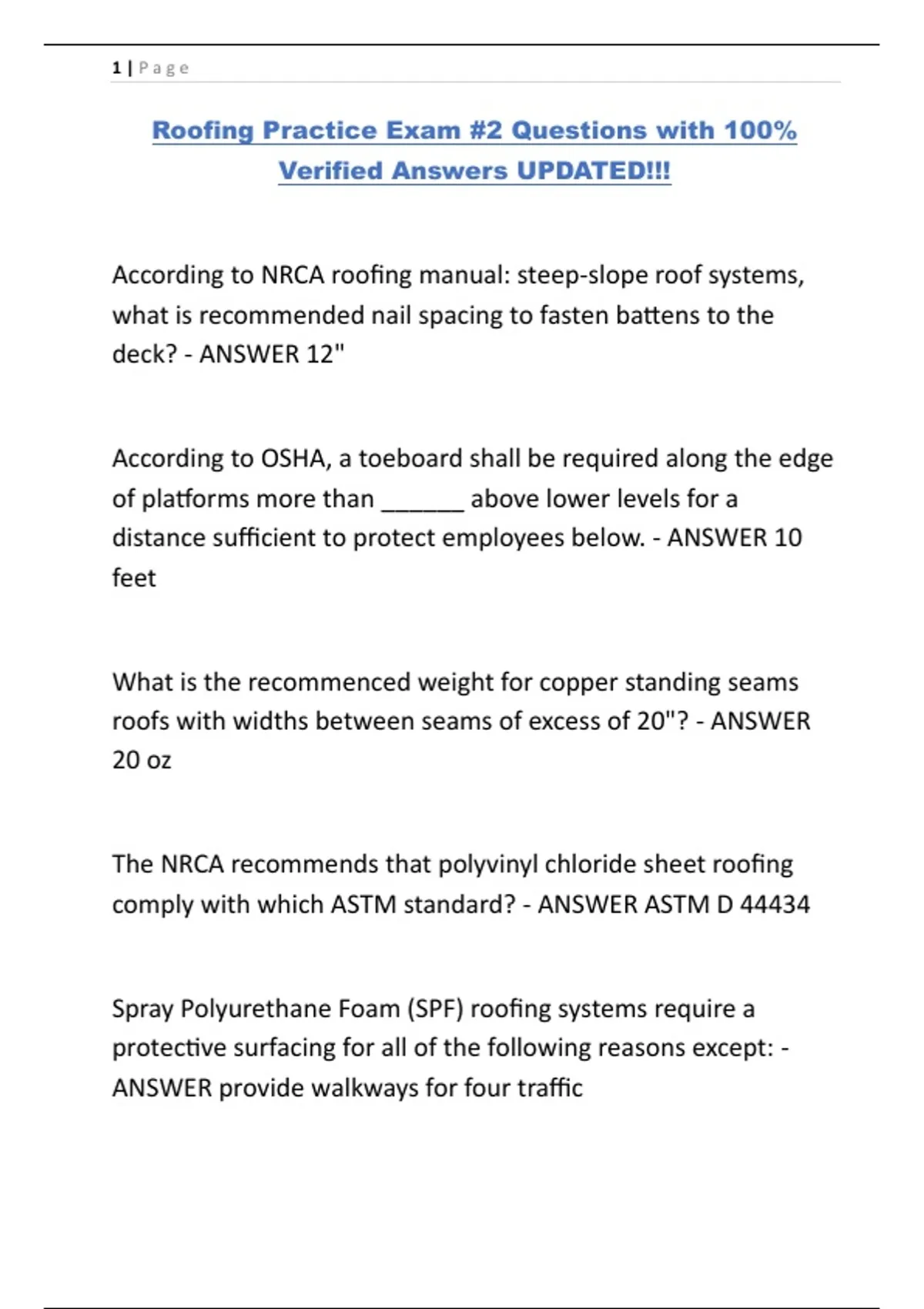 Roofing Practice Exam -2 Questions with 100% Verified Answers UPDATED!!!.