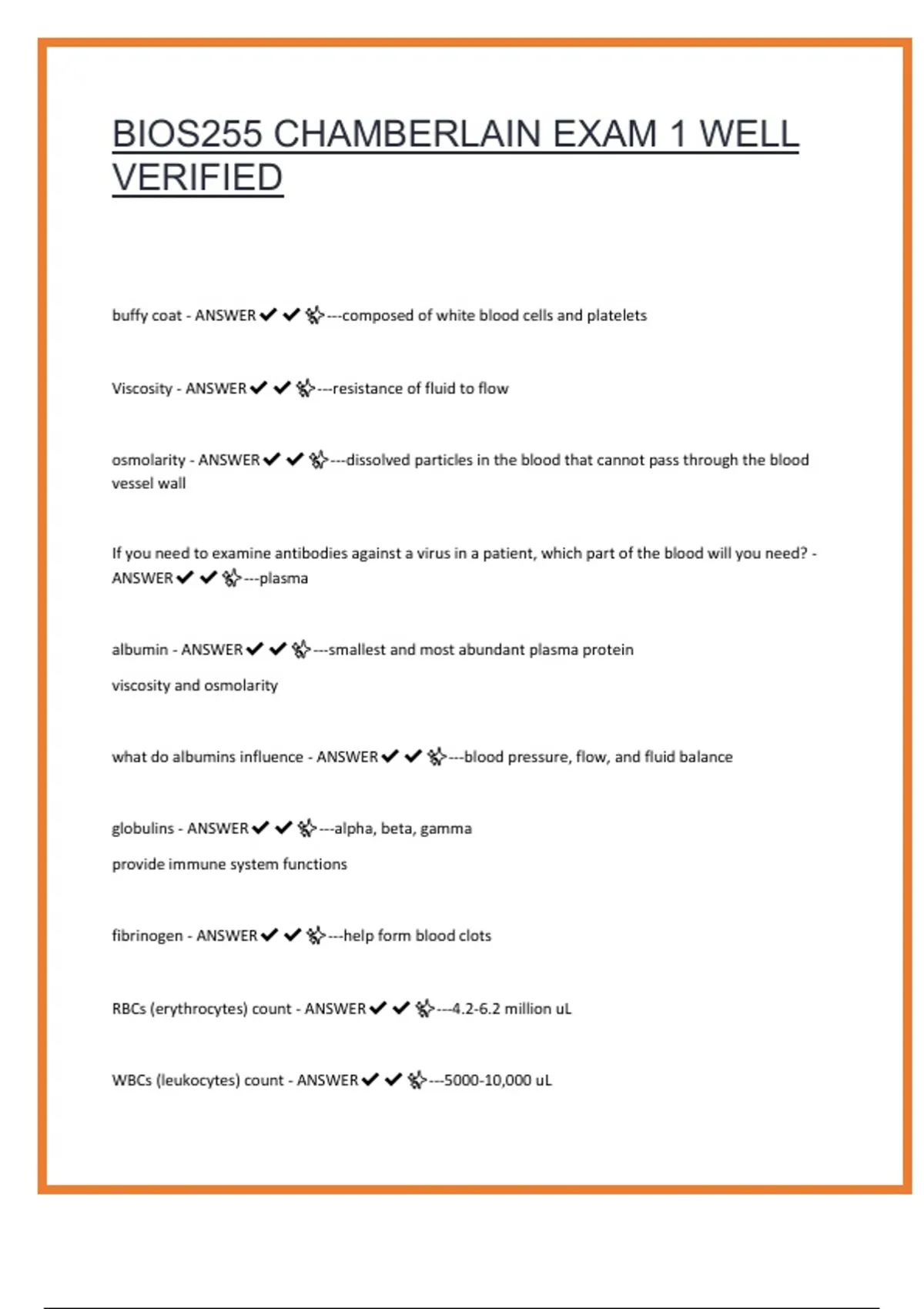 1 Exam (elaborations) BIOS255 Chamberlain Exam 1 2025 | Verified Questions and Correct Answers 2 Exam (elaborations) Chamberlain ATI Comprehensive Exit Exam 2023 – Verified Questions & Correct Answers Study Guide