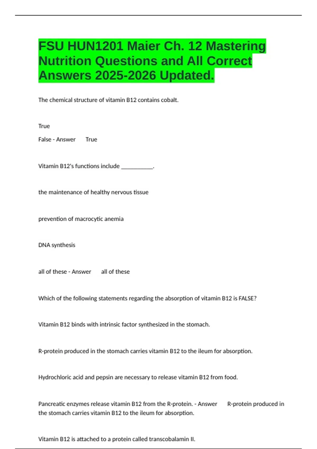 1 Exam (elaborations) Hun1201 Midterm Chapters 1-4 & 6 Test Questions All Solved Correct . 2 Exam (elaborations) HUN1201 FSU FINAL EXAM AND ALL CORRECT ANSWERS UPDATED. 3 Exam (elaborations) HUN 1201 FSU all quizzes Answered Correct Updated.