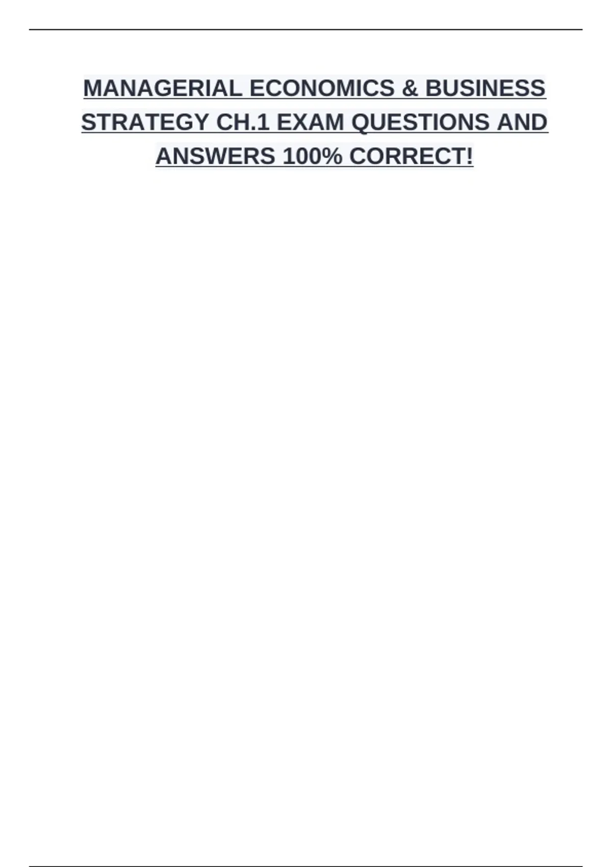 MANAGERIAL ECONOMICS & BUSINESS STRATEGY FINAL EXAM BUNDLE (COMPLETE PACKAGE DEAL)QUESTIONS AND ANSWERS 100% CORRECTMANAGERIAL ECONOMICS & BUSINESS STRATEGY FINAL EXAM BUNDLE (COMPLETE PACKAGE DEAL)QUESTIONS AND ANSWERS 100% CORRECTMANAGERIAL ECONOMICS & BUSINESS STRATEGY FINAL EXAM BUNDLE (COMPLETE PACKAGE DEAL)QUESTIONS AND ANSWERS 100% CORREC