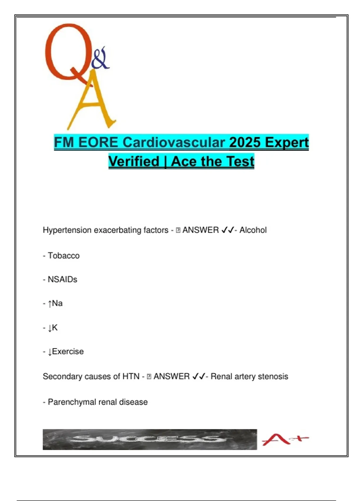 FM EORE Cardiovascular Review | 100+ Questions with Answers | MED312 | HTN, Angina, CHF, Valvular Disease