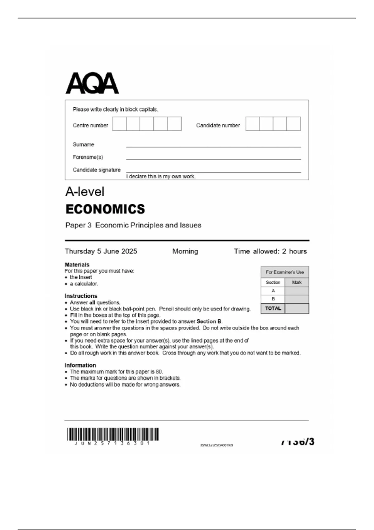 AQA A-Level Economics Paper 3 (Economic Principles & Issues) 2025