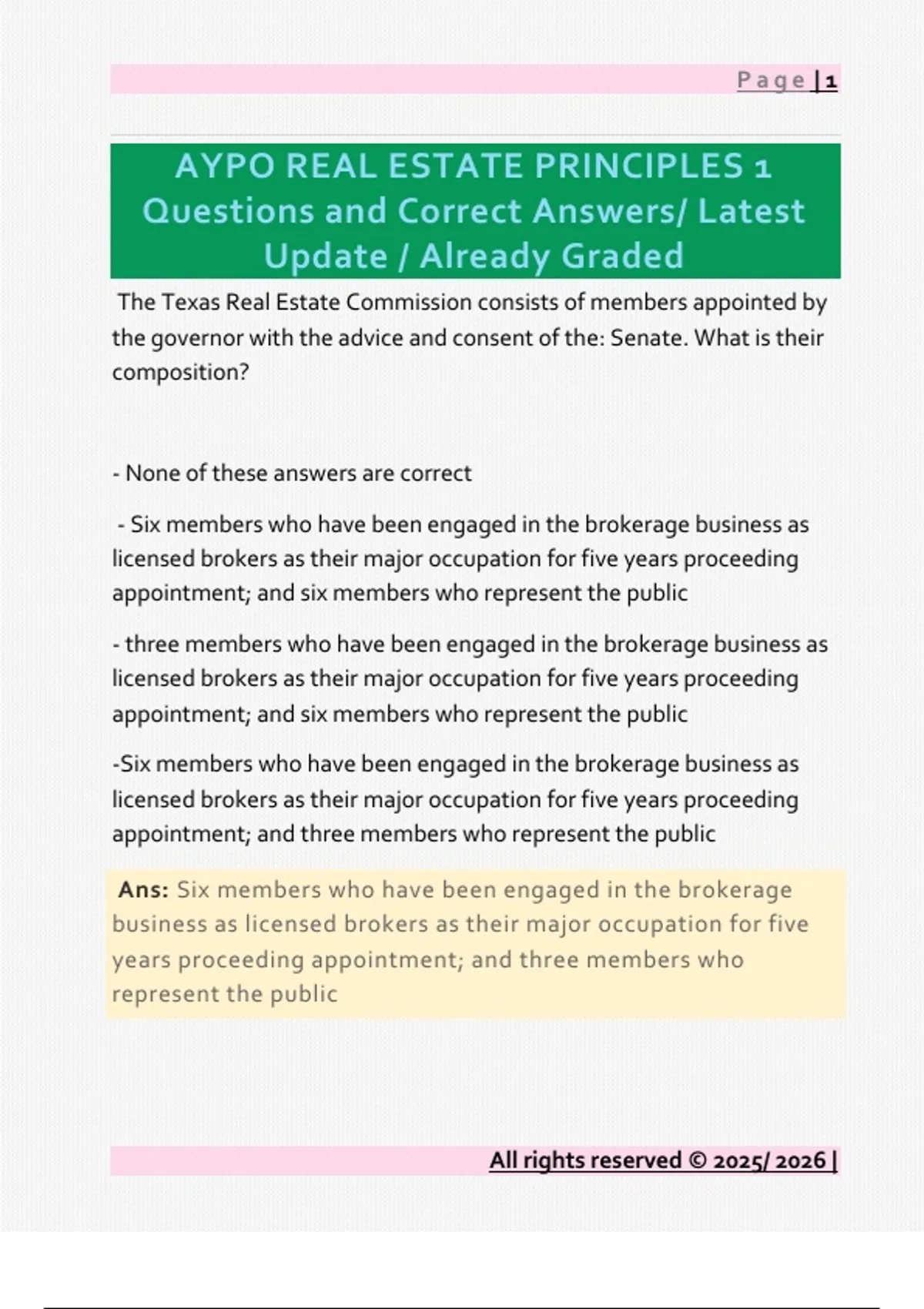 AYPO REAL Questions and Correct Answers/ Latest Update / Already Graded