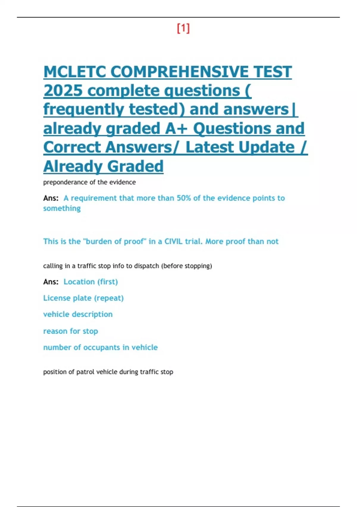 MCLETC Questions and Correct Answers/ Latest Update / Already Graded