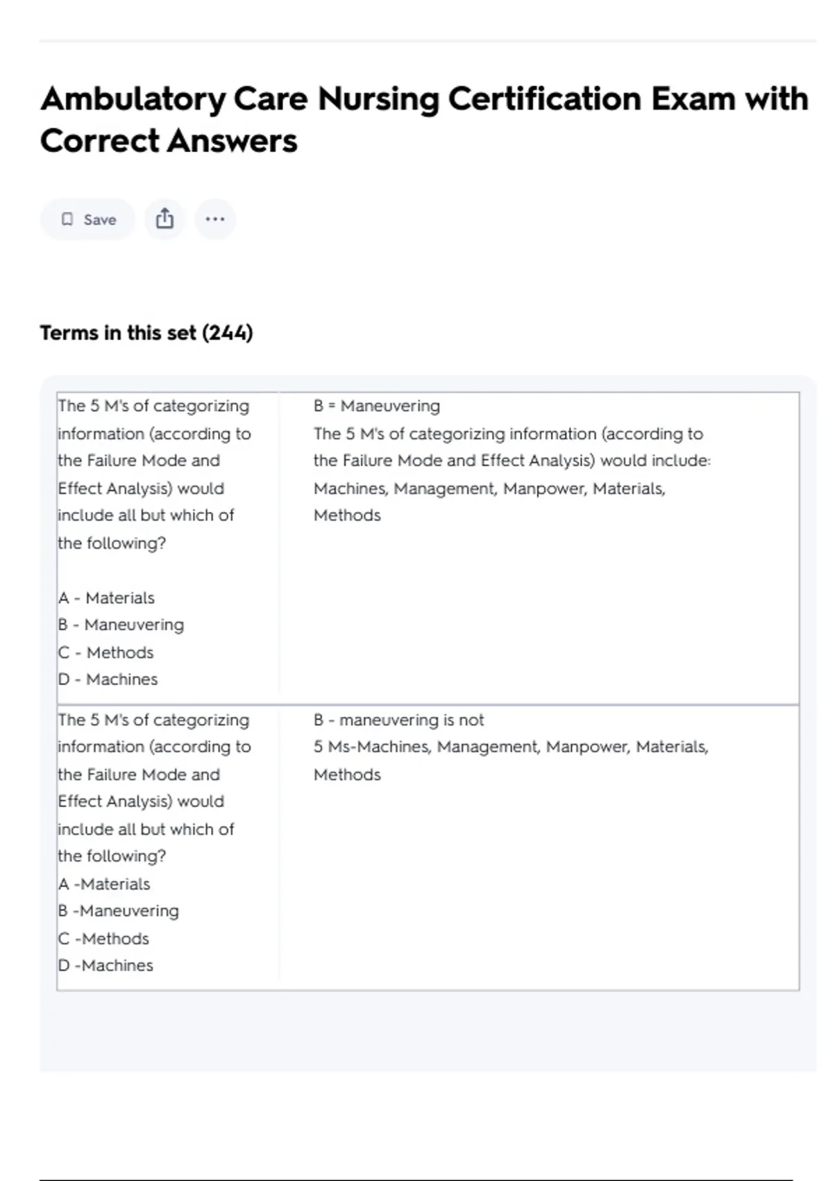 Ambulatory Care Nursing Certification Exam with Correct Answers 3 Exam (elaborations) Ambulatory Care Nursing Certification review Questions and Answers 4 Exam (elaborations) Ambulatory care certification Exam with Correct Answers 5 Exam (elaborations) Ambulatory Care Nurse Certification Exam (ANCC) Questions and Answers