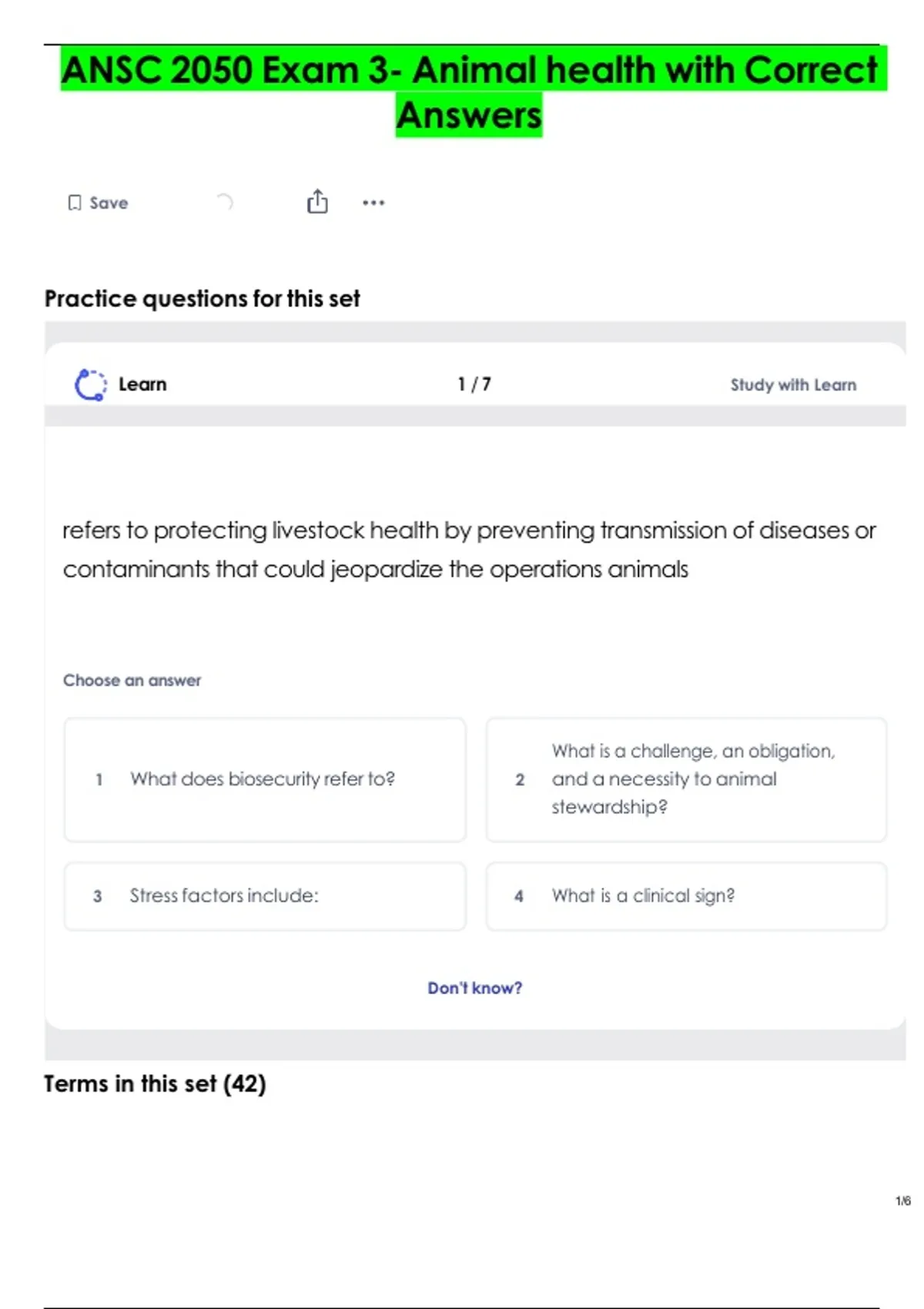 ANSC 2050 final prep Questions with Verified Solutions 100% Correct 2 Exam (elaborations) Animal Welfare and Animal Rights (ANSC 2050) Exam with Correct Answers 3 Exam (elaborations) ANSC 2050 Exam 3 - beef cattle with Correct Answers 4 Exam (elaborations) ANSC 2050 Exam 3- Nutritional disorders with Correct Answers 5 Exam (elaborations) ANSC 2