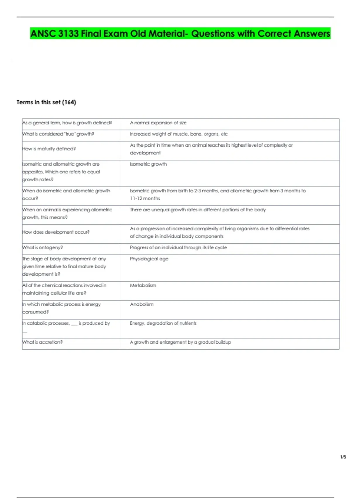 ANSC 3133 Final Exam Old Material- Questions with Correct Answers 2 Exam (elaborations) ANSC 3133 postnatal growth and genetics Exam with Solutions 3 Exam (elaborations) ANSC 3133: Bone Growth and Development Exam Questions with Verified Solutions 100% Correct 4 Exam (elaborations) ANSC 3133 Exam 1 Questions with Verified Solutions 100% Correct