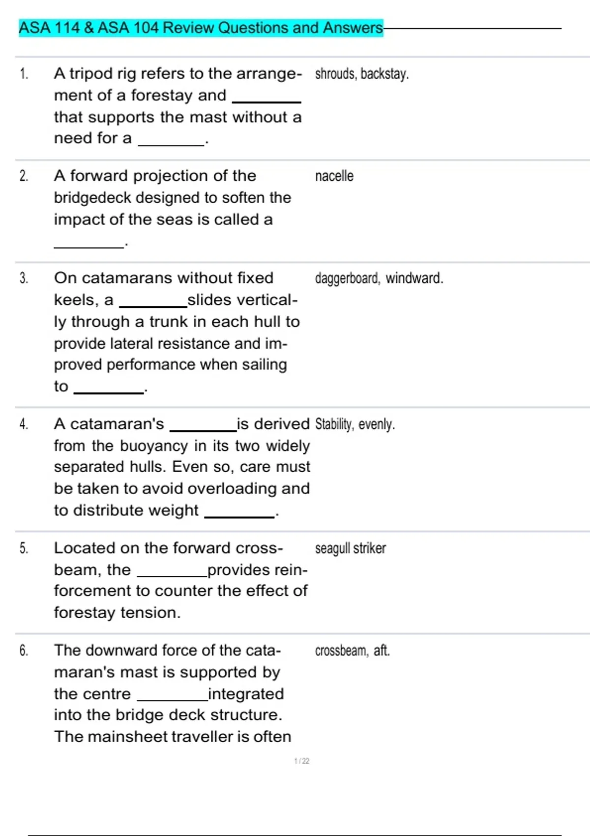 ASA 114 - Cruising Catamaran Made Easy Questions and Answers 3 Exam (elaborations) ASA 114 practice test Questions and Answers 4 Exam (elaborations) ASA 114 Questions with Correct Answers 5 Exam (elaborations) ASA 114 Exam Questions and Answers 100% Correct