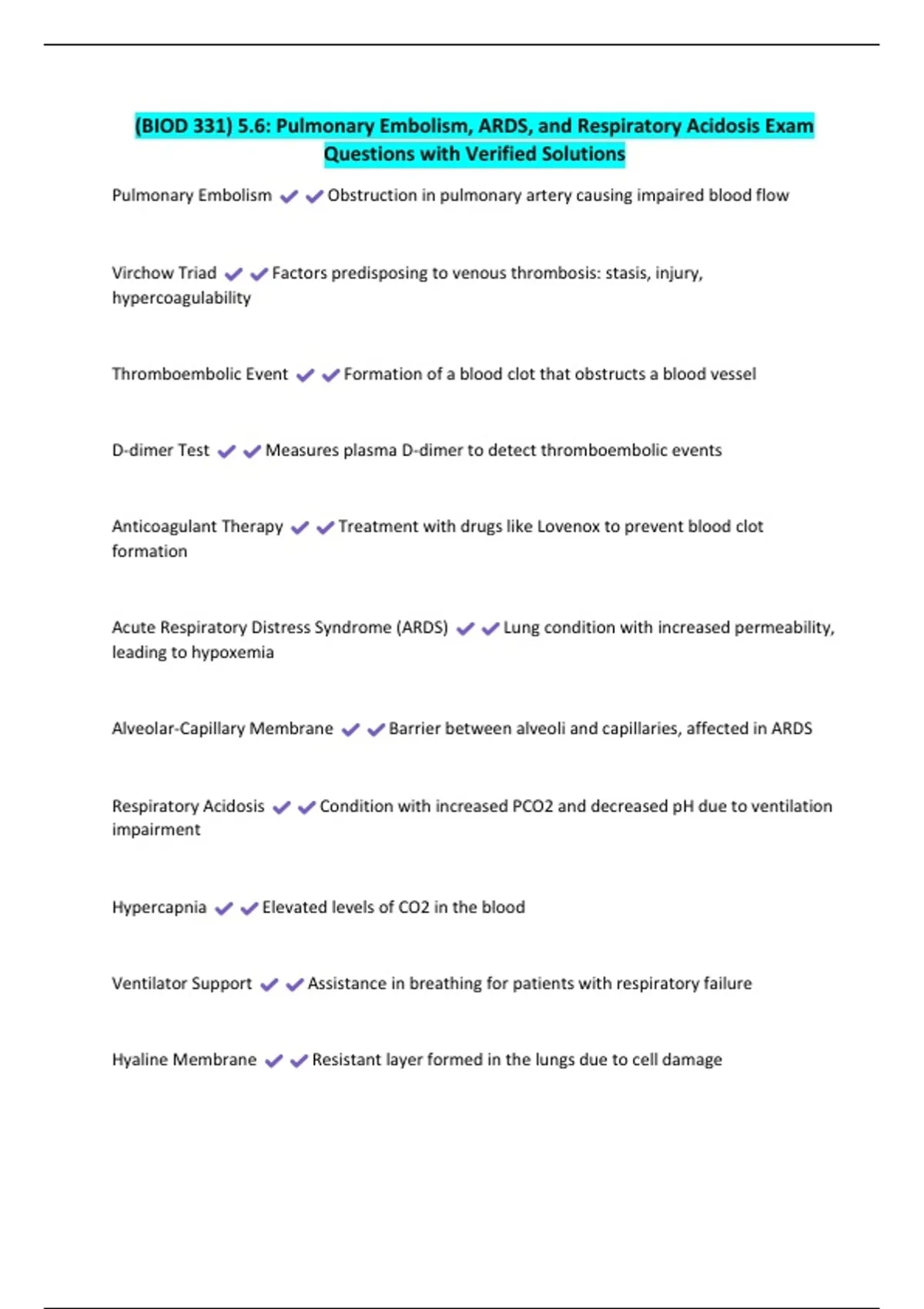 BIOD 331) 3.4: Tissue Regeneration and Wound Healing |Questions with Correct Answers 11 Exam (elaborations) BIOD 331 5.1: Respiratory System Overview Questions with Correct Answers 12 Exam (elaborations) BIOD 331 Module 5 Outcomes | Questions with Correct Answers 13 Exam (elaborations) BIOD 331 Module 1 Exam Questions with Complete Solutions 14