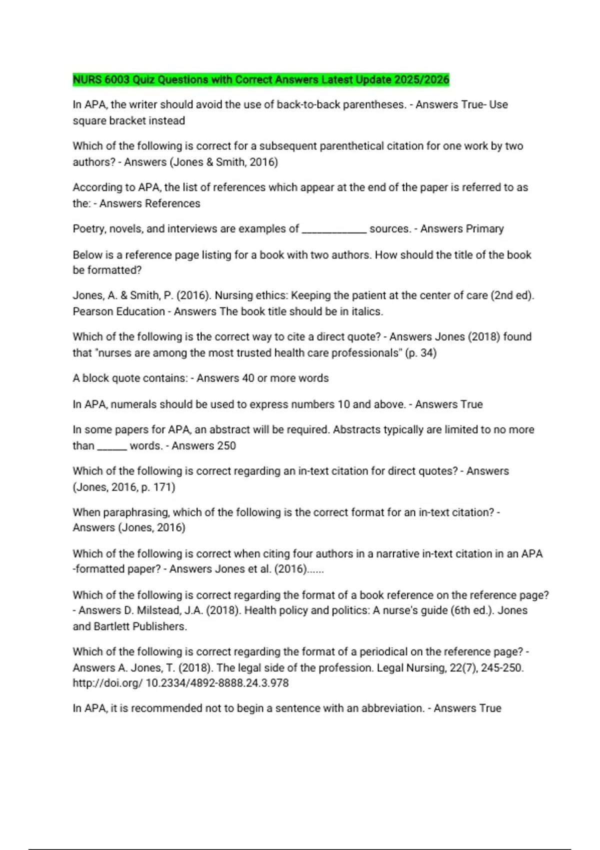 NURS 6003 BUNDLED QUESTIONS WITH CORRECT ANSWERS LATEST UPDATE 2025/2026