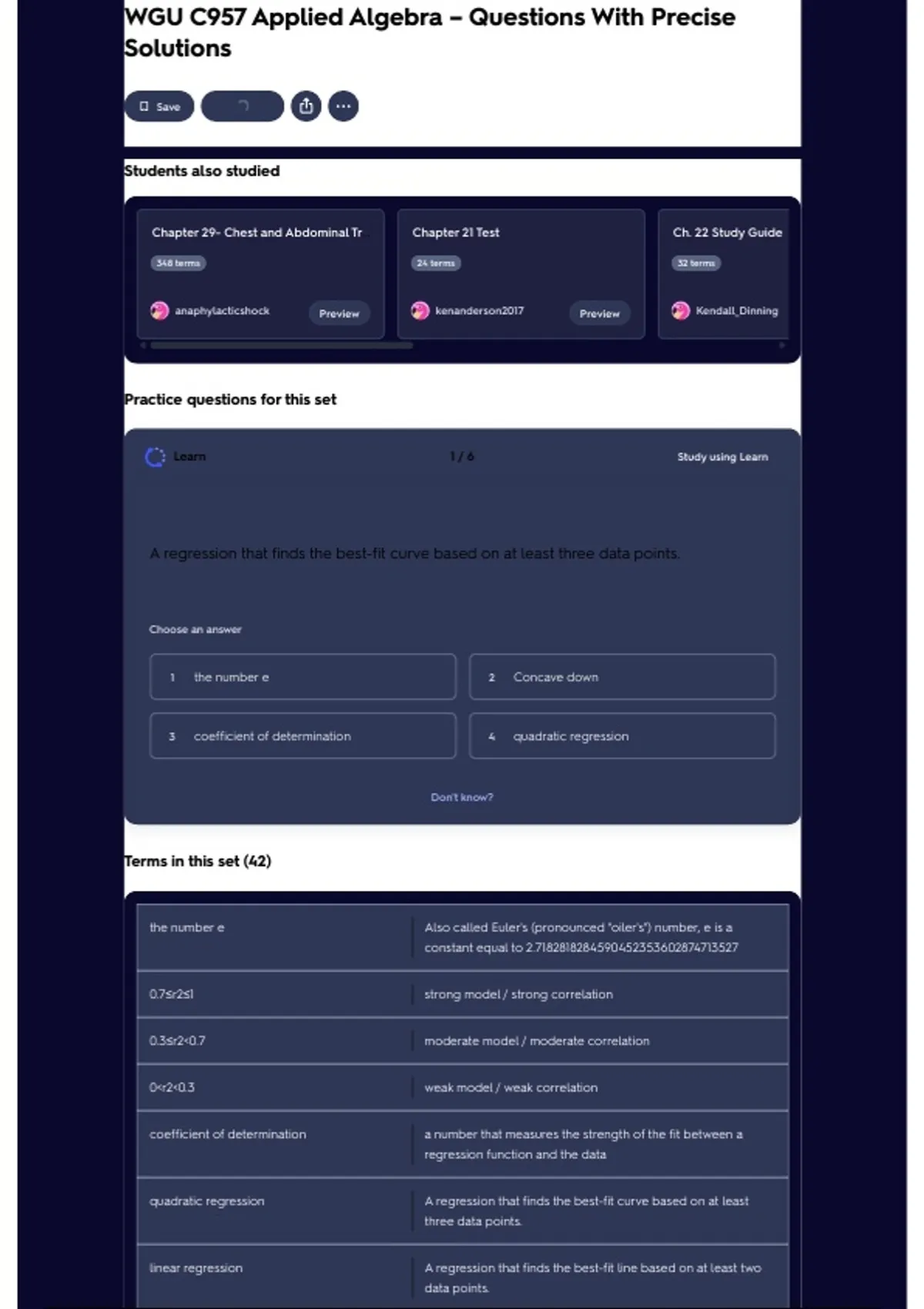 PACKAGE::- WGU C957 APPLIED ALGEBRA EXAMS