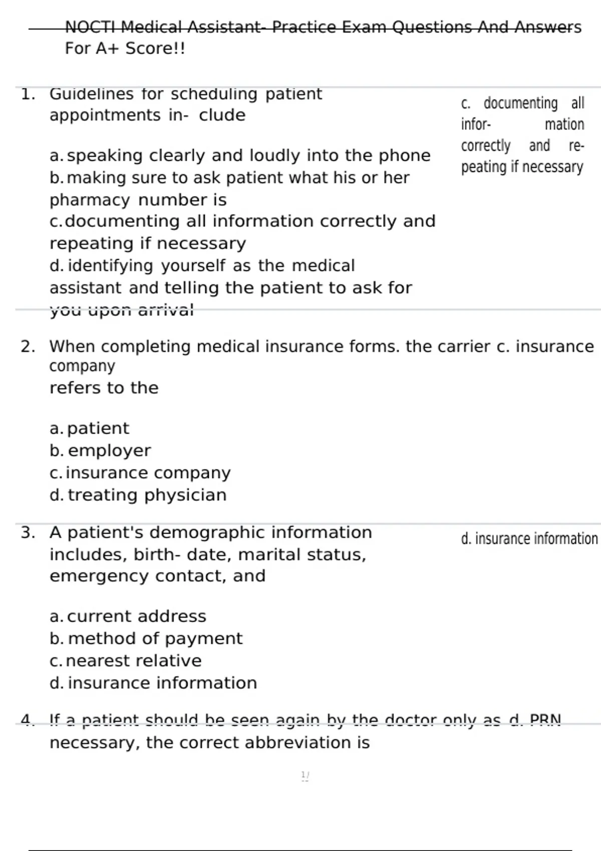 A Package Deal For NOCTI Medical Assistant Exam Solved Correctly To Score A+
