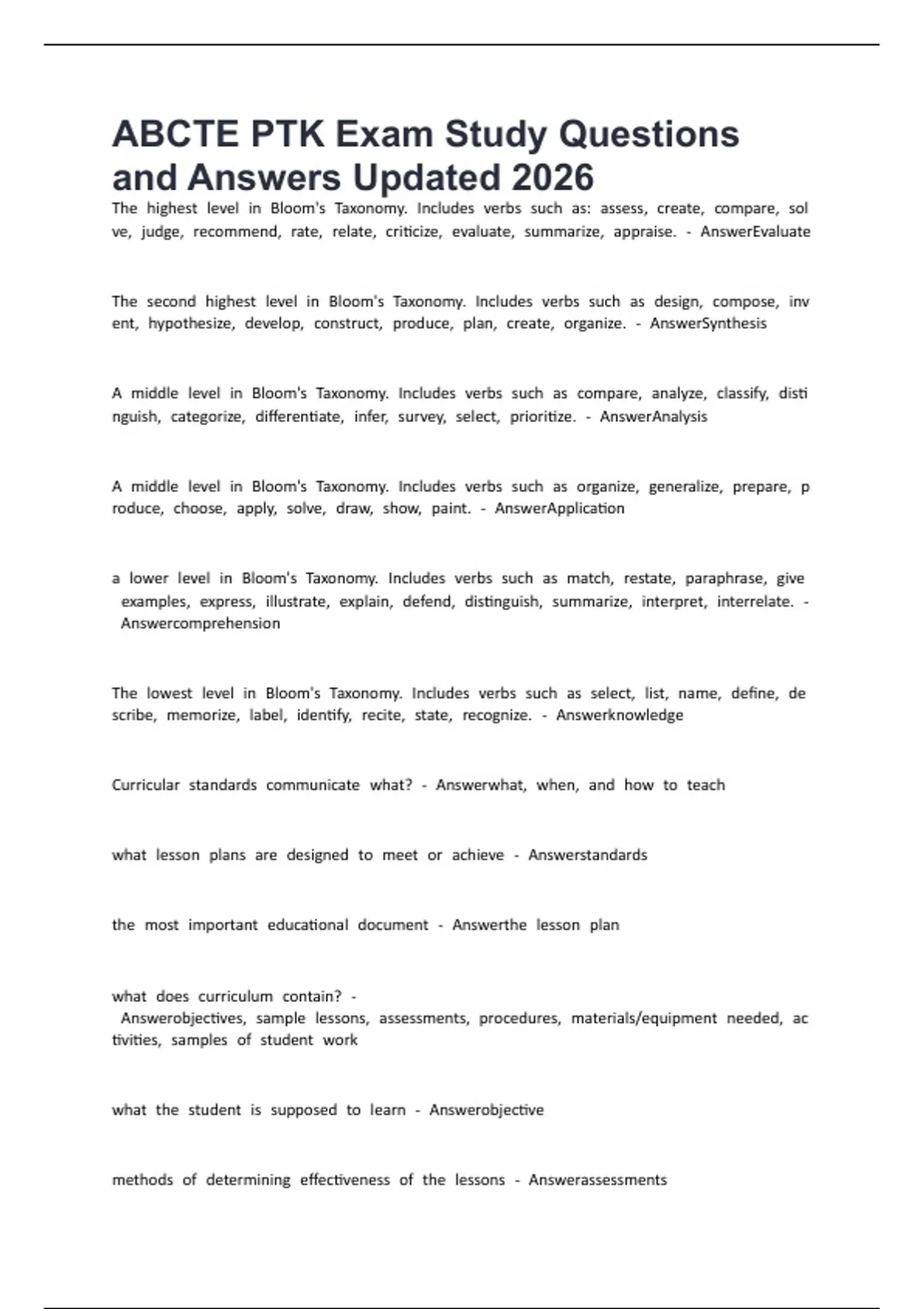 PTK Practice ABCTE Questions and Answers Updated 2026