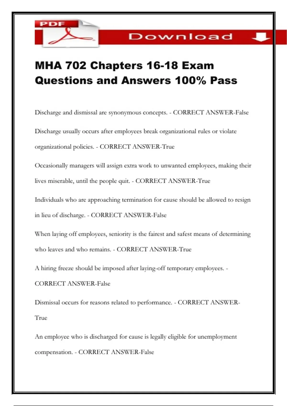 MHA 702 Chapters 16-18 Exam Questions and Answers 100% Pass