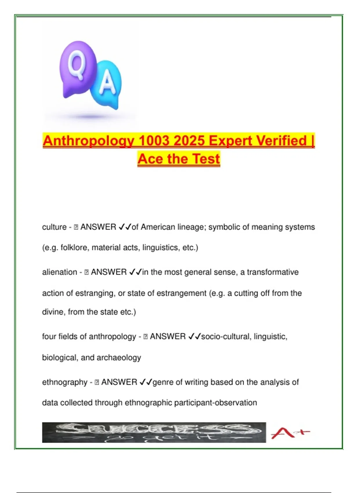 ANTHROPOLOGY EXAM COMPLETE PACKAGE DEAL