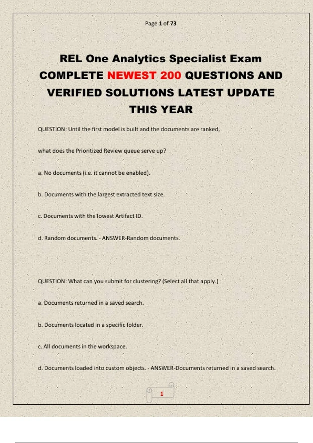 REL One Analytics Specialist Exam COMPLETE NEWEST 200 QUESTIONS AND VERIFIED SOLUTIONS LATEST UPDATE THIS YEAR