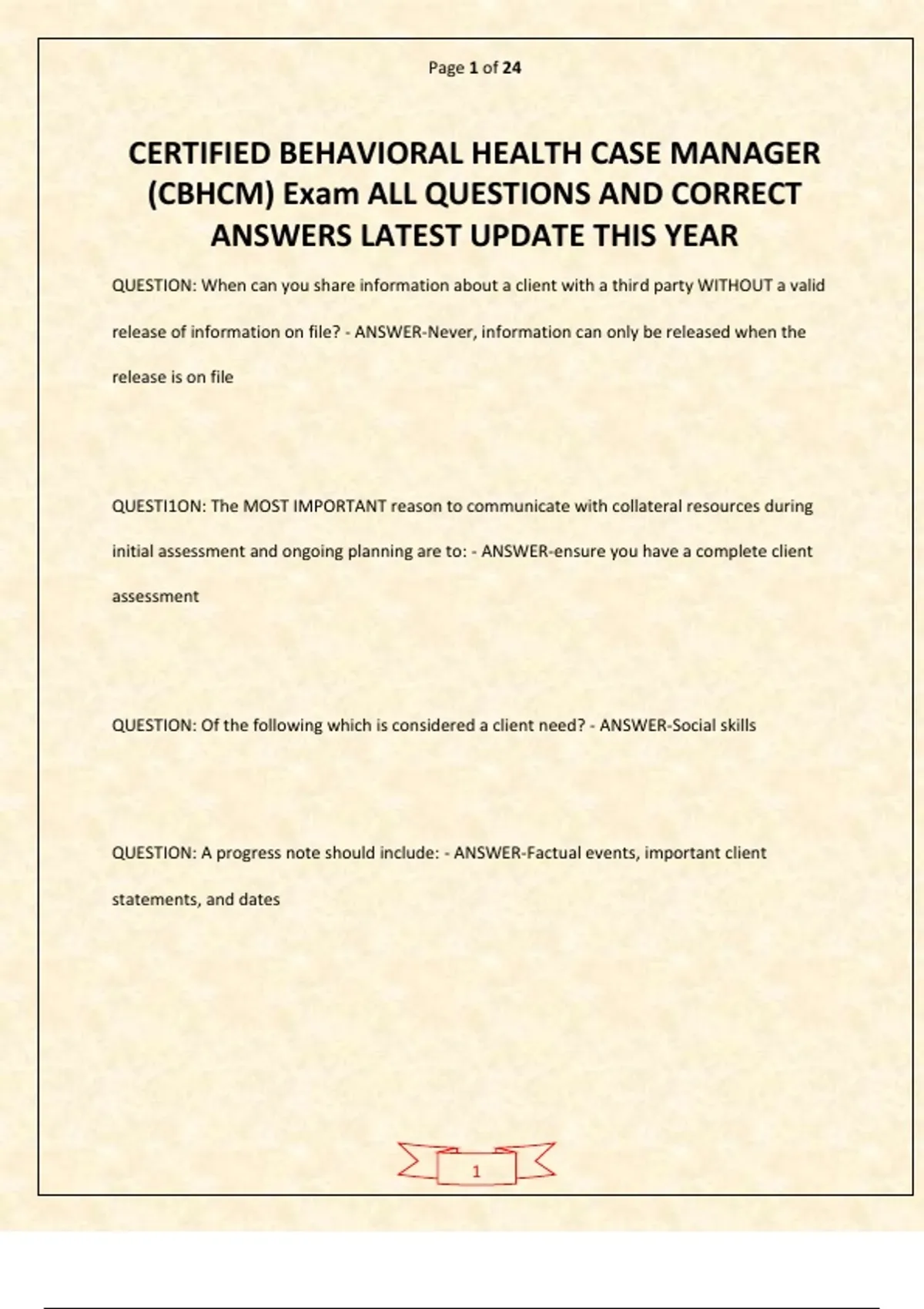 CERTIFIED BEHAVIORAL HEALTH CASE MANAGER (CBHCM) ACTUAL Exam