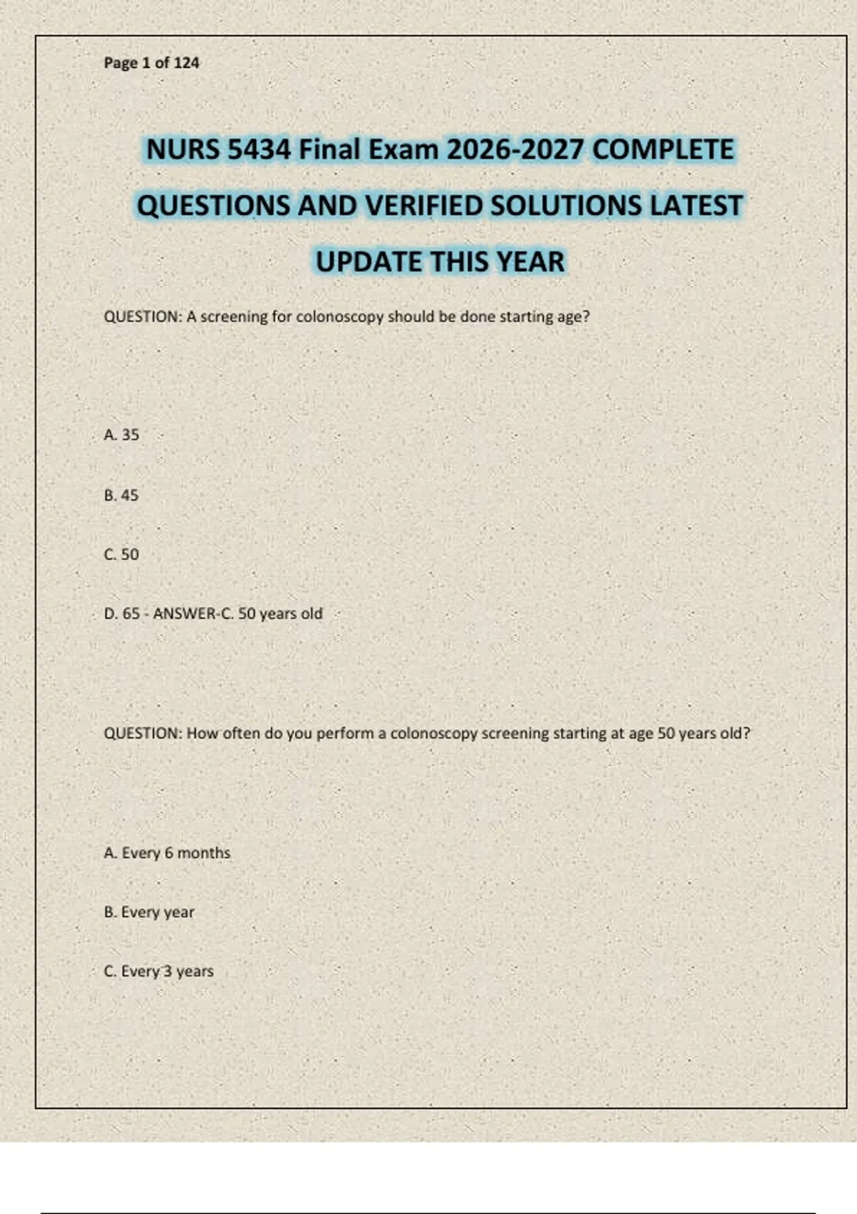 NURS 5434 Final Exam COMPLETE QUESTIONS AND VERIFIED SOLUTIONS LATEST UPDATE THIS YEAR