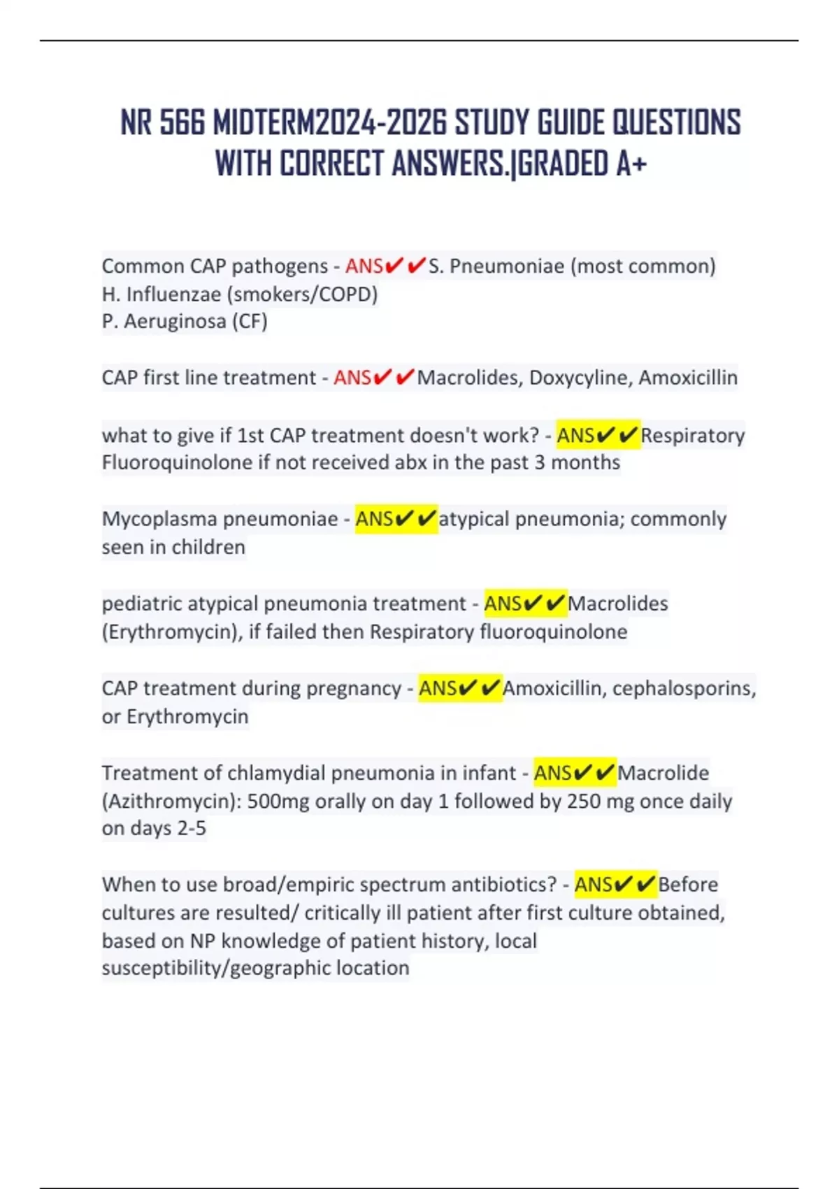 1 Exam (elaborations) NR 566 MIDTERM STUDY GUIDE QUESTIONS WITH CORRECT ANSWERS.|GRADED A+ 2 Exam (elaborations) NR566 / NR 566 MIDTERM EXAM(Latest 2024 / 2026) : Advanced Pharmacology for Care of the Family – Chamberlain GRADEDA + 3 Exam (elaborations) MIDTERM EXAM :NR566/ NR 566 ADVANCED PHARMACOLOGY CARE OF THE FAMILY EXAM REVIEW| 250