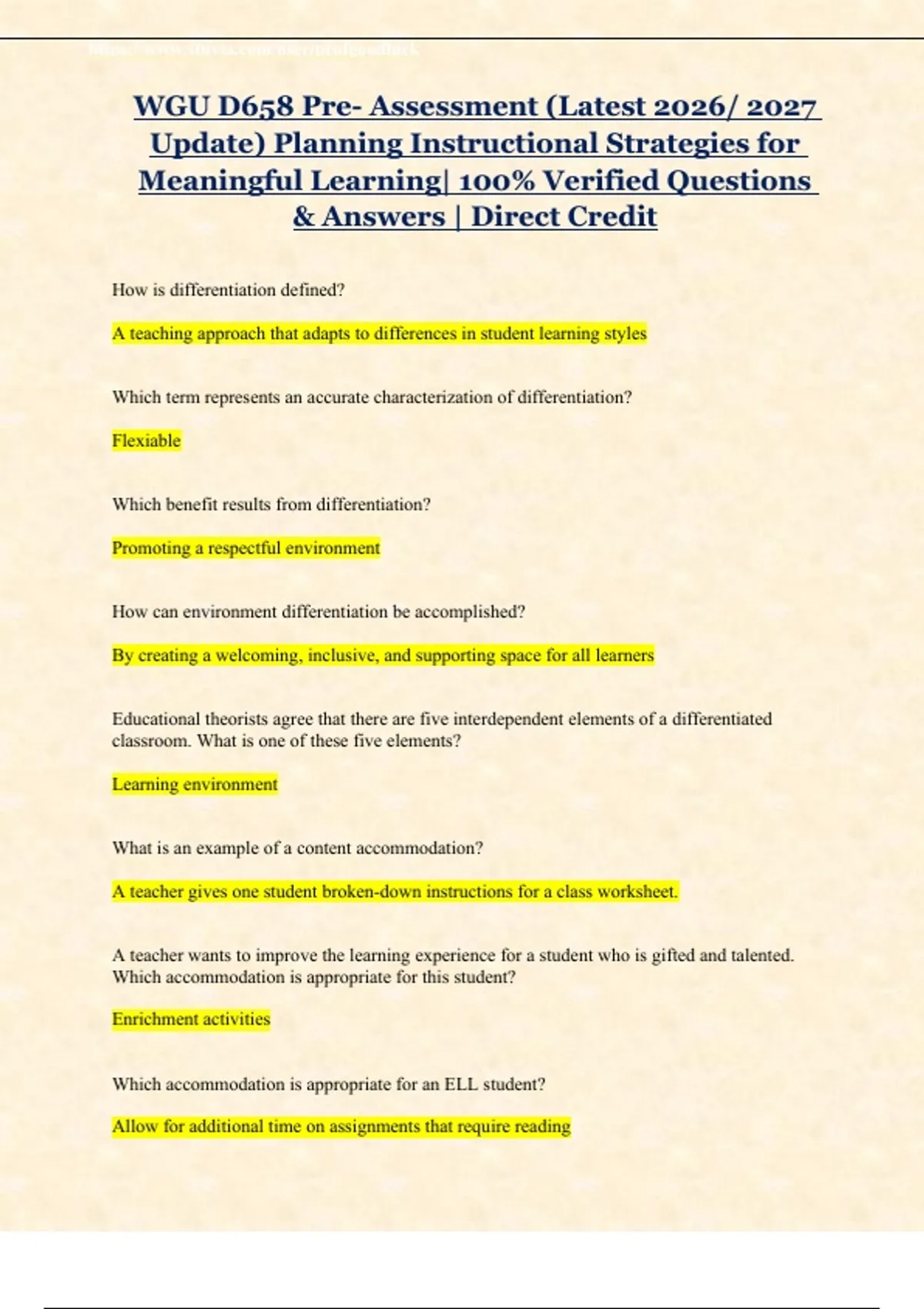 WGU D658 Objective Assessments , Pre- Assessments & Final Exams (Latest 2026/ 2027 Updates STUDY BUNDLE PACKAGE WITH VERIFIED SOLUTIONS) Planning Instructional Strategies for Meaningful Learning| 100% Guaranteed Pass | Grade A