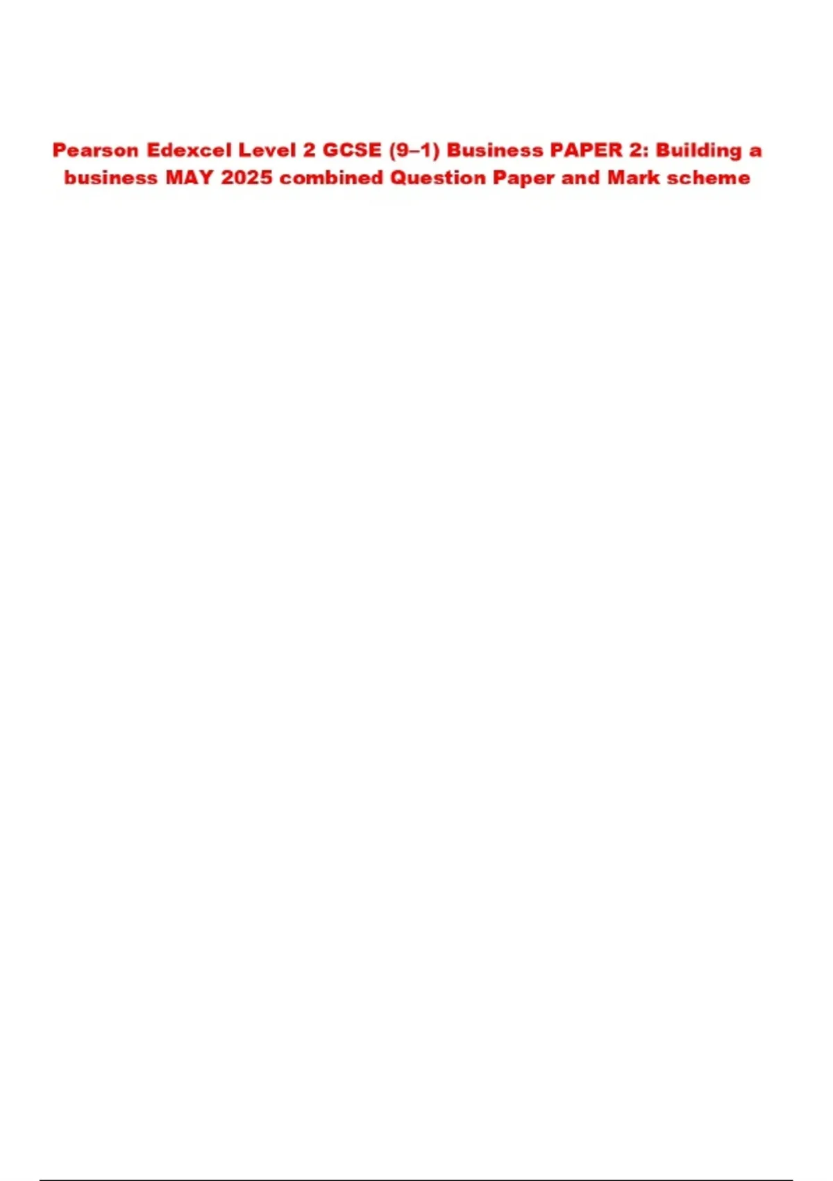 Pearson Edexcel Level 2 GCSE (9–1) Business PAPER 2: Building a business MAY 2025 combined Question Paper and Mark scheme