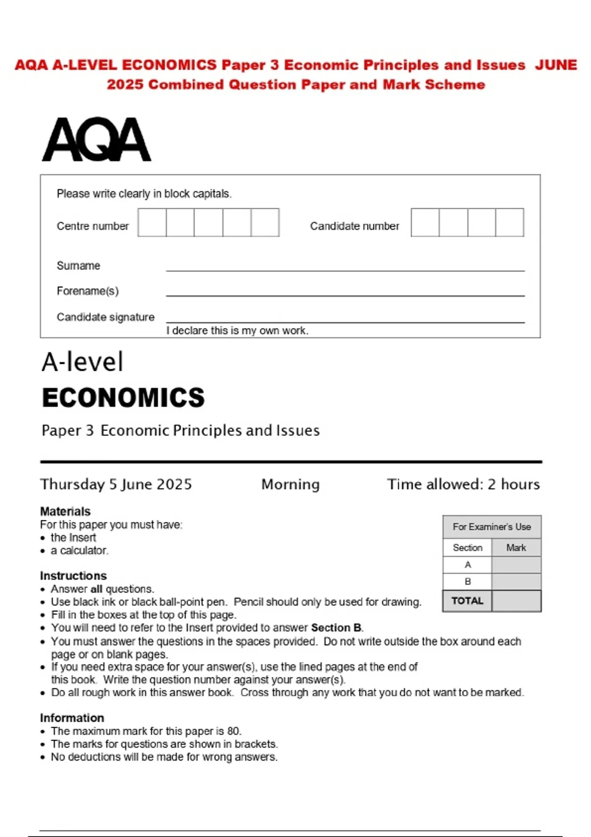 AQA A-LEVEL ECONOMICS Paper 3 Economic Principles and Issues JUNE 2025 Combined Question Paper and Mark Scheme