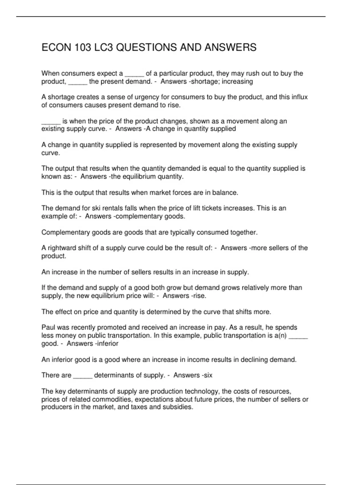 ECON 103 LC3 QUESTIONS AND ANSWERS 2 Exam (elaborations) ECON 103 GMU EXAM 1 BOUDREAUX 3 OTHER ECON 103 FINAL EXAM - CHAPMAN ISU STUDY GUIDE 4 Exam (elaborations) ECON 103 EXAM 1 QUESTIONS & ANSWERS 5 Exam (elaborations) ECON 103 FINAL BOUDREAUX QUESTIONS & ANSWERS 6 Exam (elaborations) ECON 103 EXAM 2 QUESTIONS & ANSWERS 7 Exam (elaborations