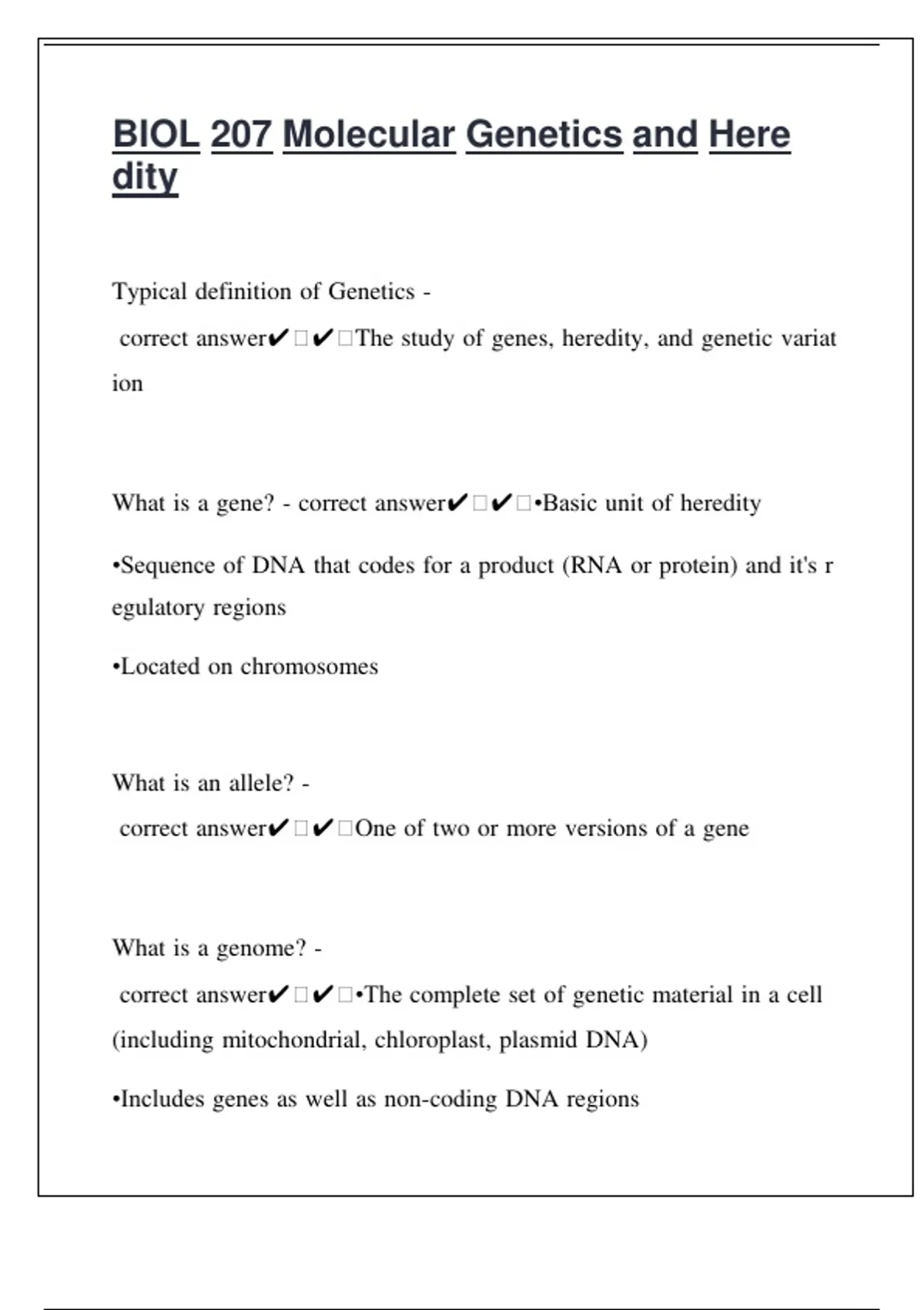 BIOL 207 Molecular Genetics and Heredity Review Questions and Detailed Answers
