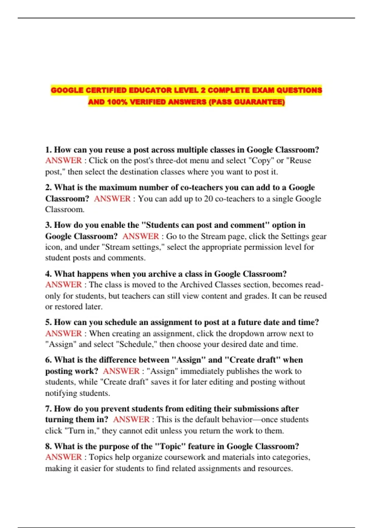 GOOGLE CERTIFIED EDUCATOR LEVEL 2 NEWLY UPDATED COLLECTION OF EXAM QUESTIONS AND VERIFIED ANSWERS DESIGNED TO GUARANTEE YOUR SUCCESS ON THE LATEST TEST VERSION
