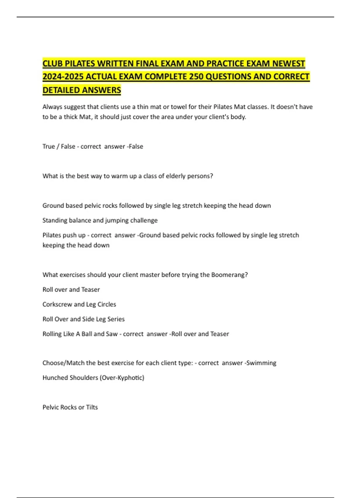 1 Exam (elaborations) 24. Club Pilates TT Canvas Quiz Study Guide Trusted Academic Learning Resource Optimized for High-Stakes Exams and Final Assessments 2 Exam (elaborations) CLUB PILATES FINAL WRITTEN EXAM PREP COMPLETE COURSE MASTERY NOTES WITH DETAILED EXPLANATIONS AND MEMORY-BOOSTING KEY POINTS 3 Exam (elaborations) CLUB PILATES FINAL EXAM