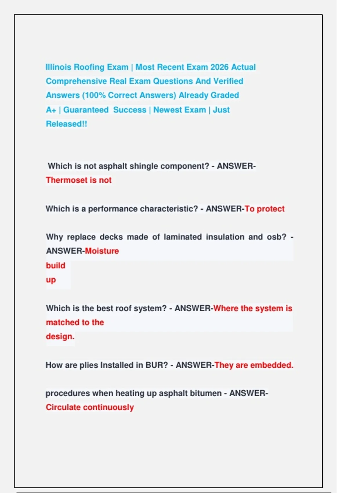 Illinois Roofing Exam | Most Recent Exam 2026 Actual Comprehensive Real Exam Questions And Verified Answers (100% Correct Answers) Already Graded A+ | Guaranteed Success | Newest Exam Illinois Roofing Exam | Most Recent Exam 2026 Actual Comprehensive Real Exam Questions And Verified Answers (100% Correct Answers) Already Graded A+