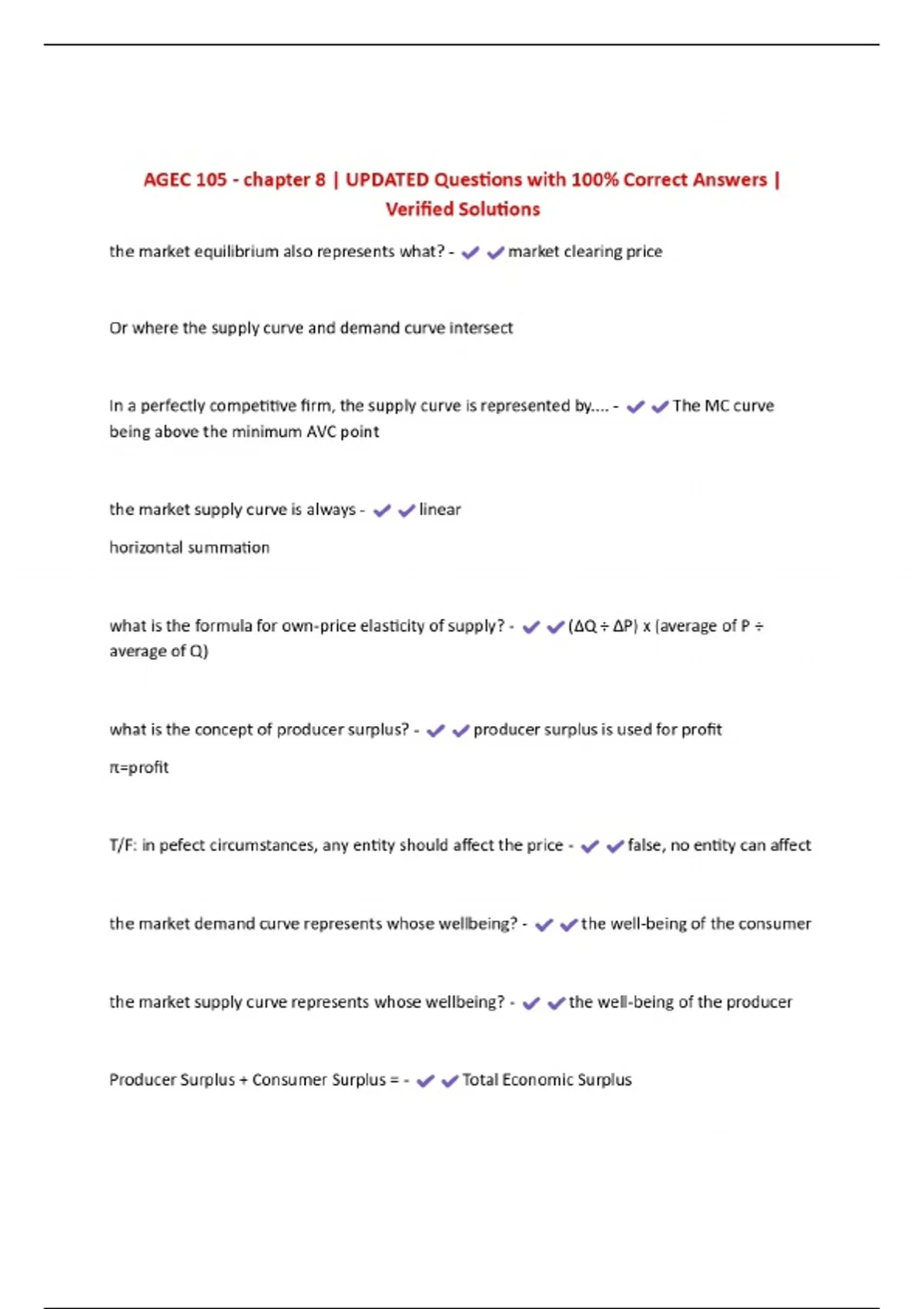 Bundle for AGEC 105 chapter 2 to 11 EXAMS | All UPDATED Questions with 100% Correct Answers | Verified Solutions