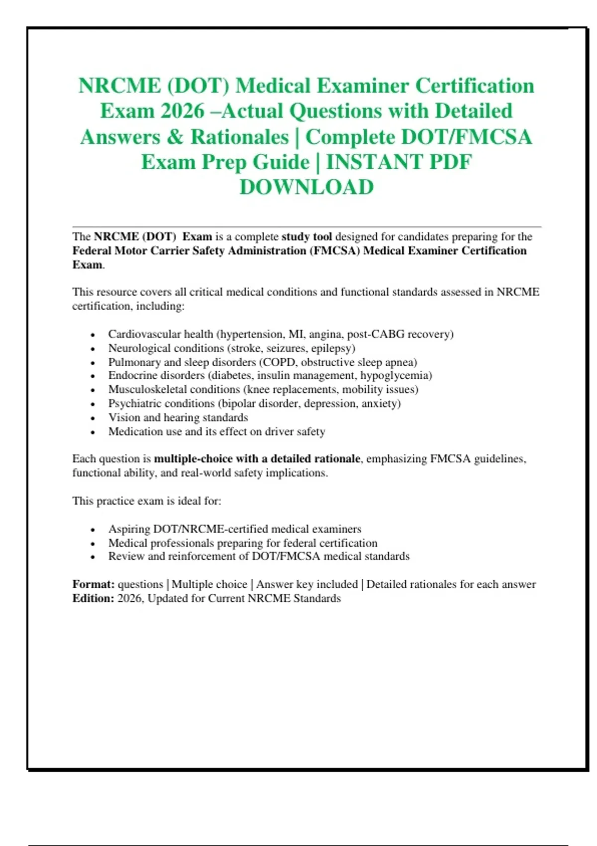 NRCME 2026 Exam Mastery Bundle – Practice Questions, Answers & FMCSA Study Guide