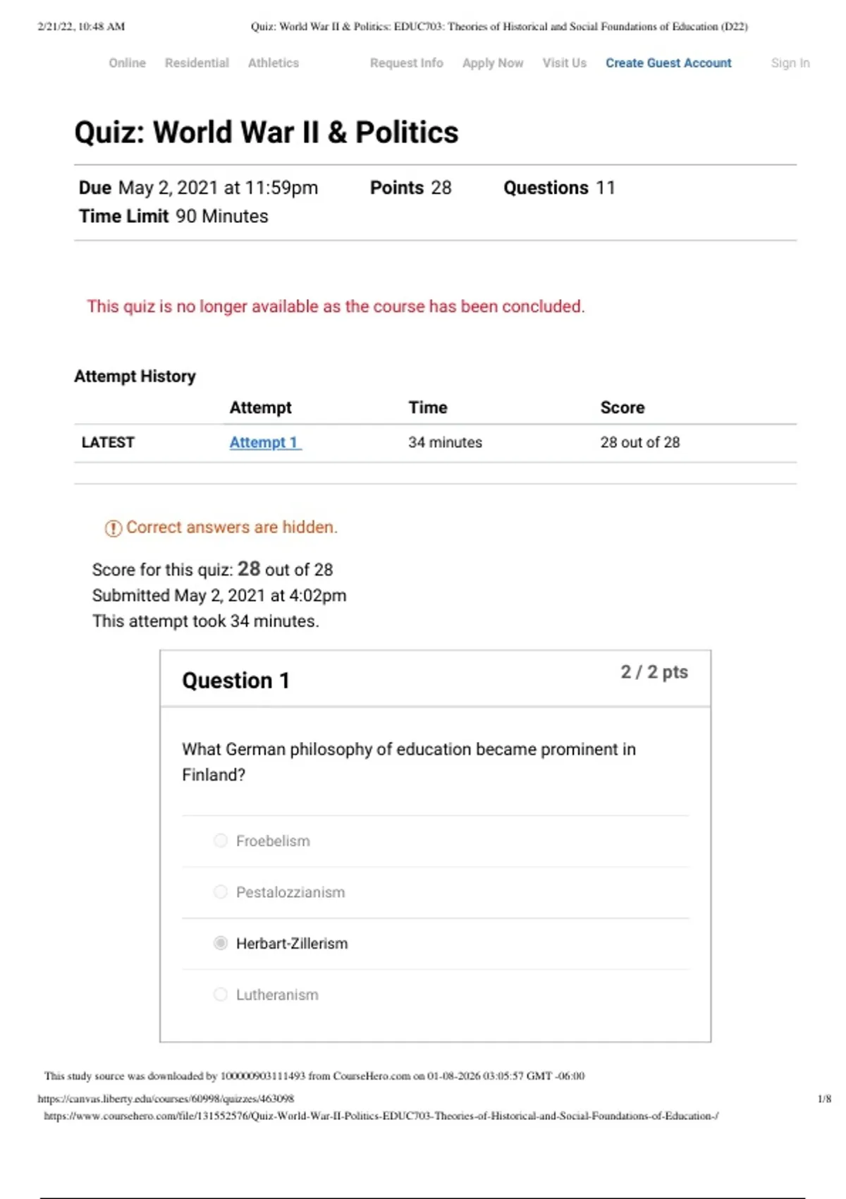 Exam (elaborations) EDUC 703|World War II & Politics: EDUC703: Theories of Historical and Social Foundations of Education (D22)| NEW EDITION 2 Exam (elaborations) EDUC 703| Native Americans & Progressivism: EDUC703: Theories of Historical and Social Foundations of Education (D22) | With complete solution New 3 Exam (elaborations) EDUC 703|America