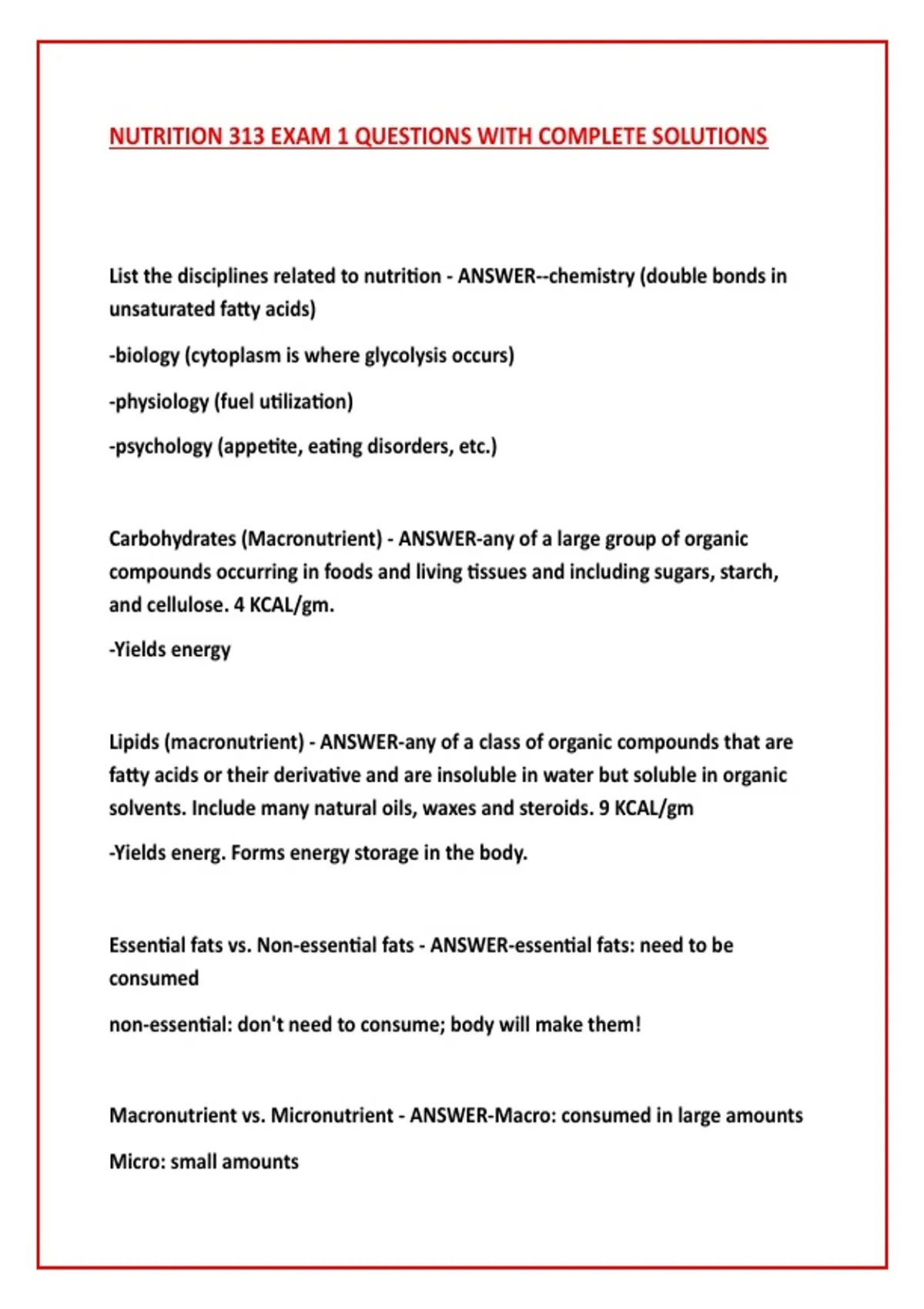 NUTRITION 313 EXAM BUNDLE WITH COMPLETE QUESTIONS AND ANSWERS