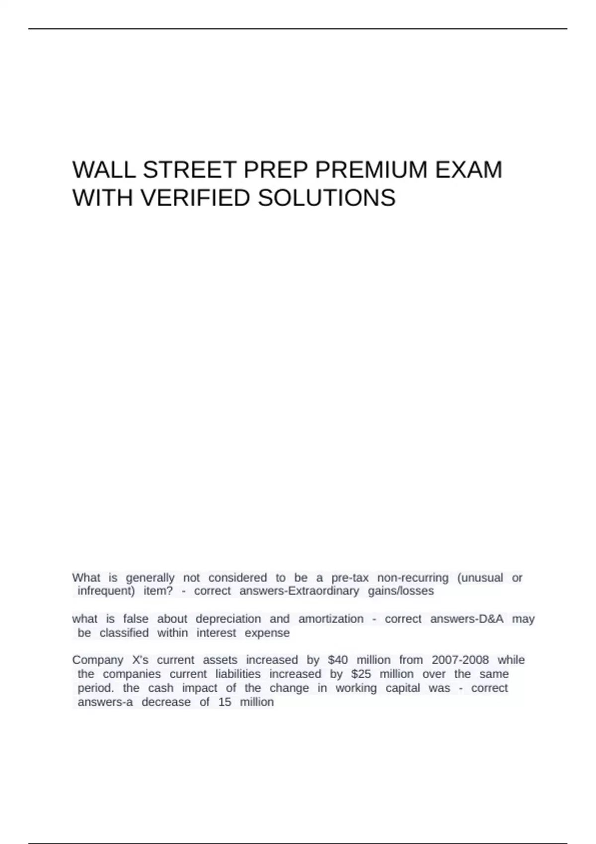 WALL STREET PREP PREMIUM EXAM QUESTION WITH CORRECT ANSWERS