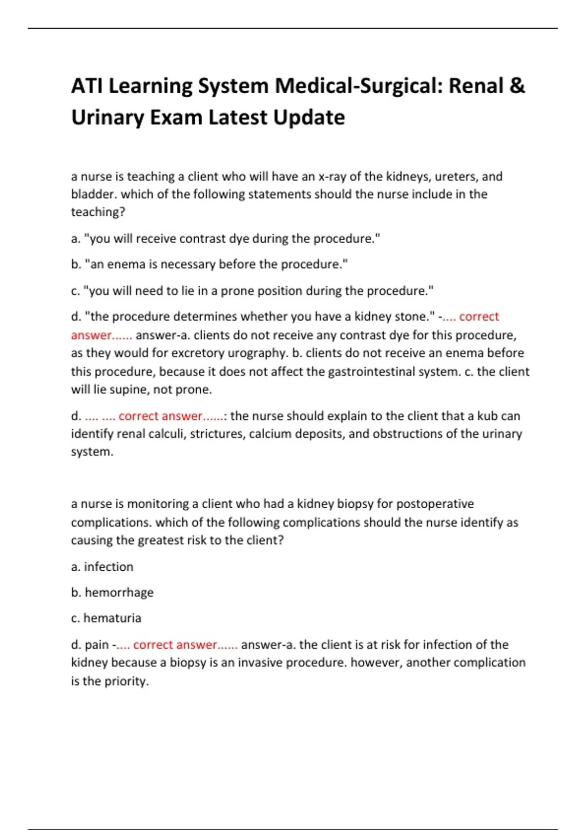 ATI Learning System Medical-Surgical: Renal & Urinary Exam Latest Update